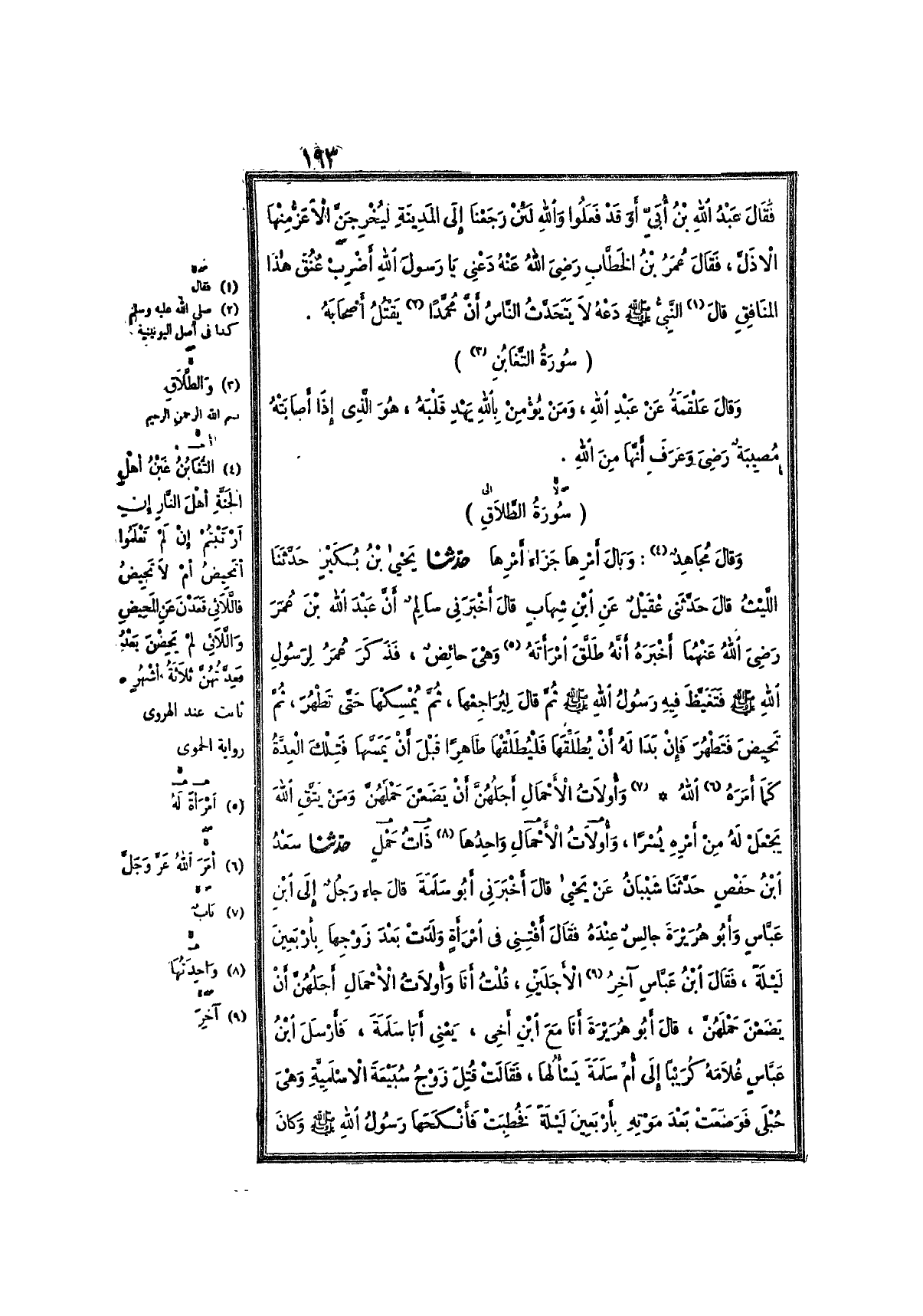 4908- حَدَّثَنَا يَحْيَى بْنُ بُكَيْرٍ ، حَدَّثَنَا اللَّيْثُ ، قَالَ : حَدَّثَنِي عُقَيْلٌ ، عَنِ ابْنِ شِهَابٍ ، قَالَ : أَخْبَرَنِي سَالِمٌ ، أَنَّ عَبْدَ اللهِ بْنَ عُمَرَ ، رَضِيَ اللَّهُ عَنْهُمَا ، أَخْبَرَهُ : أَنَّهُ طَلَّقَ امْرَأَتَهُ وَهِيَ حَائِضٌ ، فَذَكَرَ عُمَرُ لِرَسُولِ اللهِ صَلَّى اللَّهُ عَلَيْهِ وَسَلَّمَ ، فَتَغَيَّظَ فِيهِ رَسُولُ اللهِ صَلَّى اللَّهُ عَلَيْهِ وَسَلَّمَ , ثُمَّ قَالَ : لِيُرَاجِعْهَا ، ثُمَّ يُمْسِكْهَا حَتَّى تَطْهُرَ ، ثُمَّ تَحِيضَ فَتَطْهُرَ ، فَإِنْ بَدَا لَهُ أَنْ يُطَلِّقَهَا , فَلْيُطَلِّقْهَا طَاهِرًا قَبْلَ أَنْ يَمَسَّهَا ، فَتِلْكَ العِدَّةُ كَمَا أَمَرَهُ اللَّهُ.
