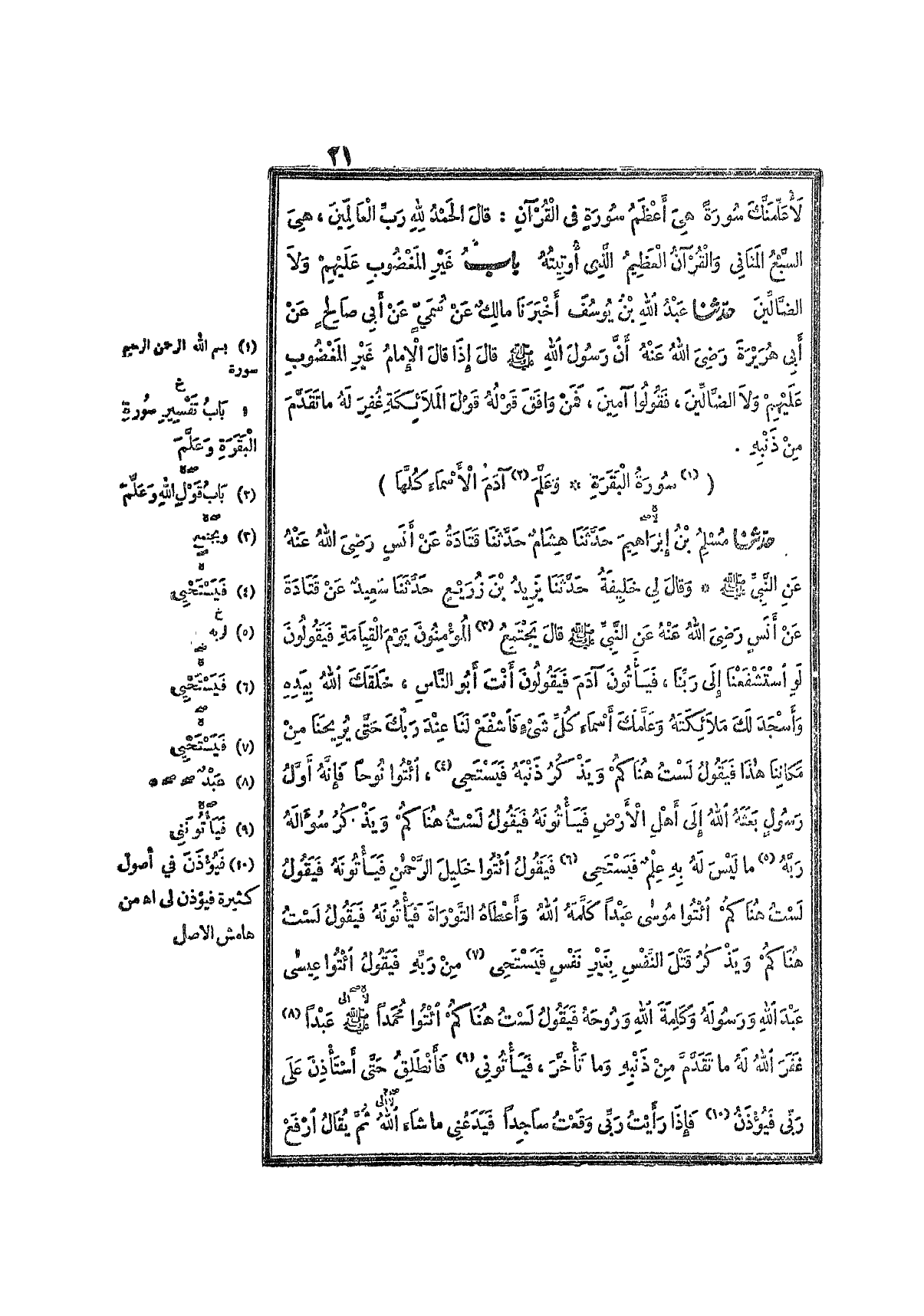 1- بَابُ قَوْلِ اللهِ تَعَالَى : {وَعَلَّمَ آدَمَ الأَسْمَاءَ كُلَّهَا}.