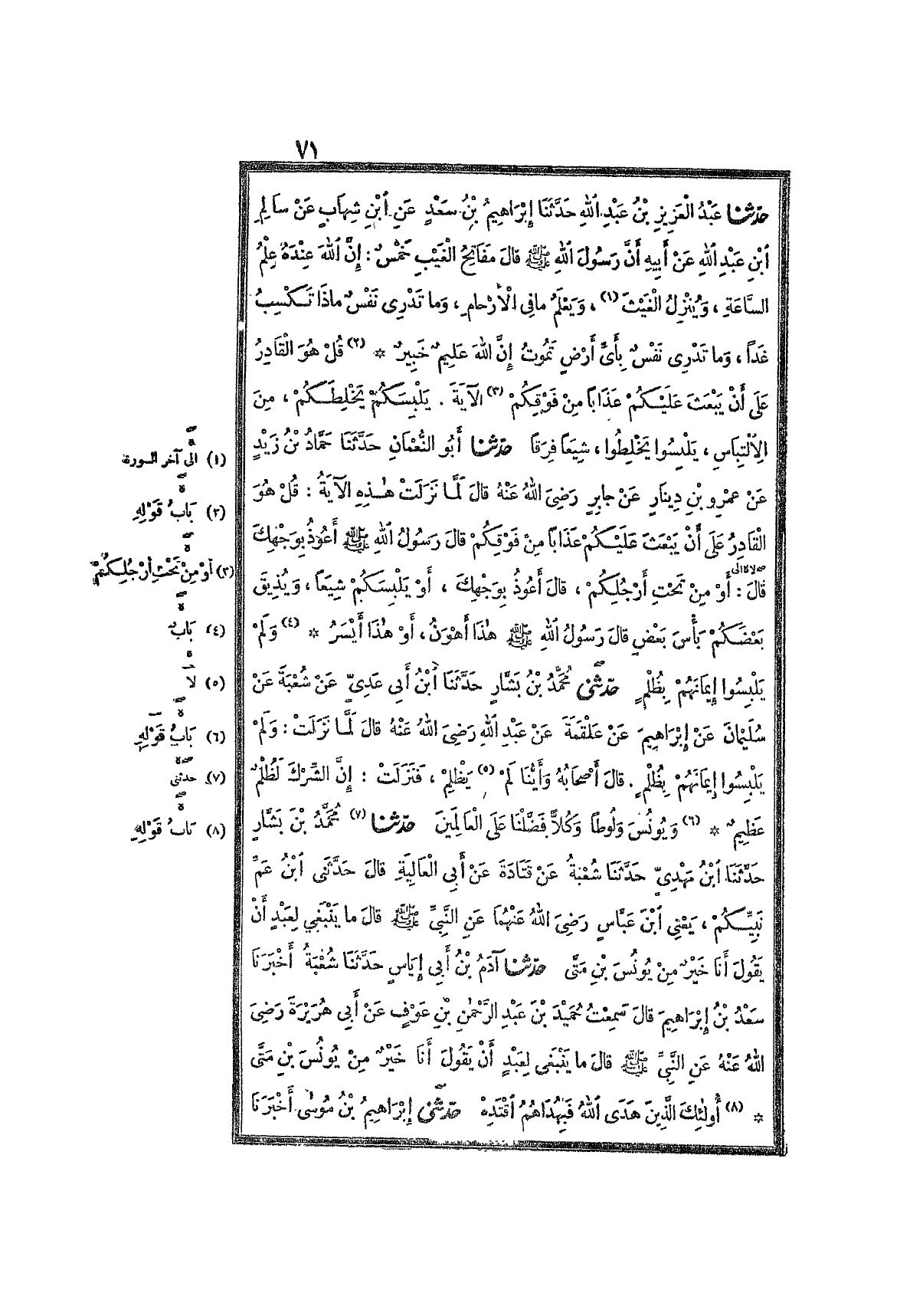 3- بَابُ : {وَلَمْ يَلْبِسُوا إِيمَانَهُمْ بِظُلْمٍ}.