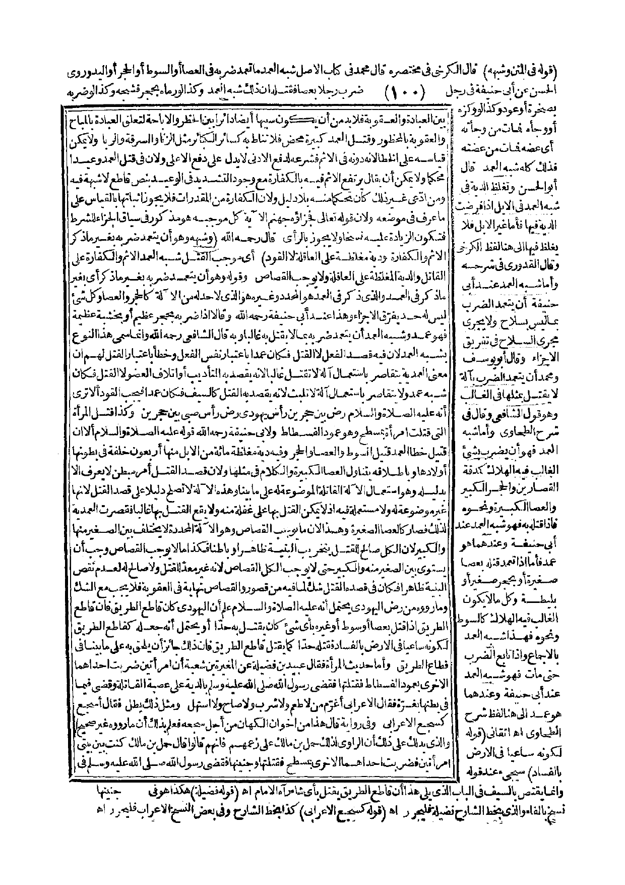 ـــــــــــــــــــــــــــــQقَوْلُهُ فِي الْمَتْنِ وَشِبْهِهِ) قَالَ الْكَرْخِيُّ فِي مُخْتَصَرِهِ قَالَ مُحَمَّدٌ فِي كِتَابِ الْأَصْلِ شِبْهُ الْعَمْدِ مَا تَعَمَّدَ ضَرْبَهُ فِي الْعَصَا أَوْ السَّوْطِ أَوْ الْحَجَرِ أَوْ الْيَدِ وَرَوَى الْحَسَنُ عَنْ أَبِي حَنِيفَةَ فِي رَجُلٍ ضَرَبَ رَجُلًا بِعَصًا فَقَتَلَهُ إنَّ ذَلِكَ شِبْهُ الْعَمْدِ وَكَذَا لَوْ رَمَاهُ بِحَجَرٍ فَشَجَّهُ وَكَذَا لَوْ ضَرَبَهُ بِصَخْرَةٍ أَوْ عُودٍ وَكَذَا لَوْ وَكَزَهُ أَوْ وَجَأَهُ فَمَاتَ مِنْ وَجْأَتِهِ أَيْ عَضَّهُ فَمَاتَ مِنْ عَضَّتِهِ فَذَلِكَ كُلُّهُ شِبْهُ الْعَمْدِ قَالَ أَبُو الْحَسَنِ وَتُغَلَّظُ الدِّيَةُ فِي شِبْهِ الْعَمْدِ فِي الْإِبِلِ إذَا فُرِضَتْ الدِّيَةُ فِيهَا فَأَمَّا غَيْرُ الْإِبِلِ فَلَا يُغَلَّظُ فِيهَا إلَى هُنَا لَفْظُ الْكَرْخِيِّ وَقَالَ الْقُدُورِيُّ فِي شَرْحِهِ: وَأَمَّا شِبْهُ الْعَمْدِ عِنْدَ أَبِي حَنِيفَةَ أَنْ يَتَعَمَّدَ الضَّرْبَ بِمَا لَيْسَ بِسِلَاحٍ وَلَا يَجْرِي مَجْرَى السِّلَاحِ فِي تَفْرِيقِ الْأَجْزَاءِ وَقَالَ أَبُو يُوسُفَ وَمُحَمَّدٌ أَنْ يَتَعَمَّدَ الضَّرْبَ بِآلَةٍ لَا يُقْتَلُ بِمِثْلِهَا فِي الْغَالِبِ، وَهُوَ قَوْلُ الشَّافِعِيِّ وَقَالَ فِي شَرْحِ الطَّحَاوِيِّ: وَأَمَّا شِبْهُ الْعَمْدِ فَهُوَ أَنْ يَضْرِبَ بِشَيْءٍ الْغَالِبُ فِيهِ الْهَلَاكُ كَمِدَقَّةِ الْقَصَّارِينَ وَالْحَجَرِ الْكَبِيرِ وَالْعَصَا الْكَبِيرَةِ وَنَحْوِهِ فَإِذَا قَتَلَهُ بِهِ فَهُوَ شِبْهُ الْعَمْدِ عِنْدَ أَبِي حَنِيفَةَ وَعِنْدَهُمَا هُوَ عَمْدٌ فَأَمَّا إذَا تَعَمَّدَ قَتْلَهُ بِعَصًا صَغِيرَةٍ أَوْ بِحَجَرٍ صَغِيرٍ أَوْ بِلِيطَةٍ وَكَانَ مَا لَا يَكُونُ الْغَالِبُ فِيهِ الْهَلَاكُ كَالسَّوْطِ وَنَحْوِهِ فَهَذَا شِبْهُ الْعَمْدِ بِالْإِجْمَاعِ، وَإِذَا تَابَعَ الضَّرْبَ حَتَّى مَاتَ فَهُوَ شِبْهُ الْعَمْدِ عِنْدَ أَبِي حَنِيفَةَ وَعِنْدَهُمَا هُوَ عَمْدٌ إلَى هُنَا لَفْظُ شَرْحِ الطَّحَاوِيِّ. اهـ. أَتْقَانِيٌّ (قَوْلُهُ لِكَوْنِهِ سَاعِيًا فِي الْأَرْضِ بِالْفَسَادِ) سَيَجِيءُ عِنْدَ قَوْلِهِ، وَإِنَّمَا يَقْتَصُّ بِالسَّيْفِ فِي الْبَابِ الَّذِي يَلِي هَذَا أَنَّ قَاطِعَ الطَّرِيقِ يُقْتَلُ بِأَيٍّ شَيْءٍ رَآهُ الْإِمَامُ اهـ (قَوْلُهُ فَضِيلَةَ) هَكَذَا هُوَ فِي نُسَخٍ بِالْفَاءِ وَاَلَّذِي بِخَطِّ الشَّارِحِ نُضَيْلَةَ فَلْيُحَرَّرْ اهـ (قَوْلُهُ كَسَجْعِ الْأَعْرَابِيِّ) كَذَا بِخَطِّ الشَّارِحِ وَفِي بَعْضِ النُّسَخِ الْأَعْرَابِ فَلْيُحَرَّرْ اهـ