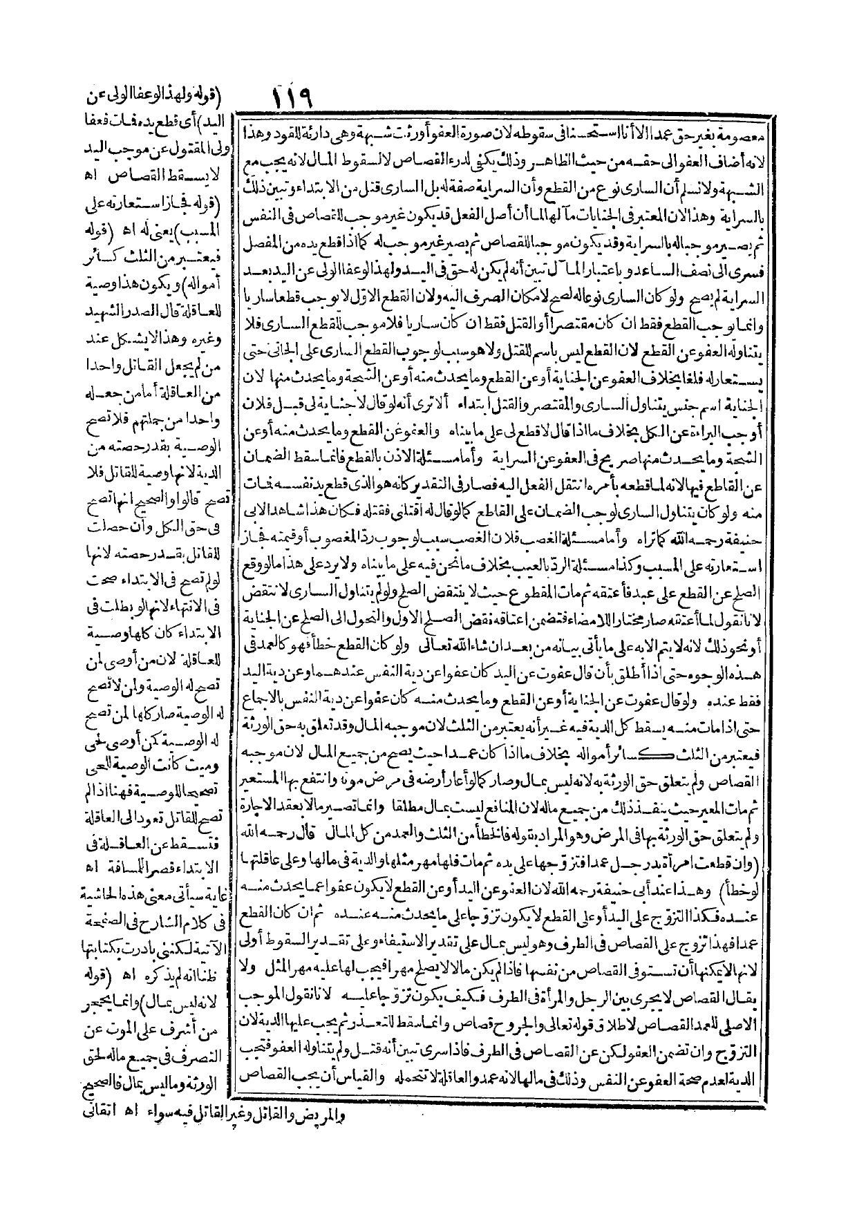 ـــــــــــــــــــــــــــــQقَوْلُهُ: وَلِهَذَا لَوْ عَفَا الْوَلِيُّ عَنْ الْيَدِ) أَيْ قَطَعَ يَدَهُ فَمَاتَ فَعَفَا وَلِيُّ الْمَقْتُولِ عَنْ مُوجِبِ الْيَدِ لَا يَسْقُطُ الْقِصَاصُ. اهـ. (قَوْلُهُ: فَجَازَ اسْتِعَارَتُهُ عَلَى الْمُسَبَّبِ) يَعْنِي لَهُ. اهـ. (قَوْلُهُ: فَيُعْتَبَرُ مِنْ الثُّلُثِ كَسَائِرِ أَمْوَالِهِ) وَيَكُونُ هَذَا وَصِيَّةً لِلْعَاقِلَةِ قَالَ الصَّدْرُ الشَّهِيدُ وَغَيْرُهُ، وَهَذَا لَا يُشْكِلُ عِنْدَ مَنْ لَمْ يَجْعَلْ الْقَاتِلَ وَاحِدًا مِنْ الْعَاقِلَةِ، أَمَّا مَنْ جَعَلَهُ وَاحِدًا مِنْ جُمْلَتِهِمْ فَلَا تَصِحُّ الْوَصِيَّةُ بِقَدْرِ حِصَّتِهِ مِنْ الدِّيَةِ؛ لِأَنَّهَا وَصِيَّةٌ لِلْقَاتِلِ فَلَا تَصِحُّ قَالُوا وَالصَّحِيحُ أَنَّهَا تَصِحُّ فِي حَقِّ الْكُلِّ وَإِنْ حَصَلَتْ لِلْقَاتِلِ بِقَدْرِ حِصَّتِهِ؛ لِأَنَّهَا لَوْ لَمْ تَصِحَّ فِي الِابْتِدَاءِ صَحَّتْ فِي الِانْتِهَاءِ؛ لِأَنَّهَا لَوْ بَطَلَتْ فِي الِابْتِدَاءِ كَانَ كُلُّهَا وَصِيَّةً لِلْعَاقِلَةِ؛ لِأَنَّ مَنْ أَوْصَى لِمَنْ تَصِحُّ لَهُ الْوَصِيَّةُ وَلِمَنْ لَا تَصِحُّ لَهُ الْوَصِيَّةُ صَارَ كُلُّهَا لِمَنْ تَصِحُّ لَهُ الْوَصِيَّةُ كَمَنْ أَوْصَى لِحَيٍّ وَمَيِّتٍ كَانَتْ الْوَصِيَّةُ لِلْحَيِّ تَصْحِيحًا لِلْوَصِيَّةِ فَهُنَا إذَا لَمْ تَصِحَّ لِلْقَاتِلِ تَعُودُ إلَى الْعَاقِلَةِ فَتَسْقُطُ عَنْ الْعَاقِلَةِ فِي الِابْتِدَاءِ قَصْرًا لِلْمَسَافَةِ. اهـ. غَايَةٌ سَيَأْتِي مَعْنَى هَذِهِ الْحَاشِيَةِ فِي كَلَامِ الشَّارِحِ فِي الصَّفْحَةِ الْآتِيَةِ لَكِنَّنِي بَادَرْت بِكِتَابَتِهَا ظَنًّا أَنَّهُ لَمْ يَذْكُرْهُ. اهـ. (قَوْلُهُ: لِأَنَّهُ لَيْسَ بِمَالٍ) وَإِنَّمَا يُحْجَرُ مَنْ أَشْرَفَ عَلَى الْمَوْتِ عَنْ التَّصَرُّفِ فِي جَمِيعِ مَالِهِ لِحَقِّ الْوَرَثَةِ وَمَا لَيْسَ بِمَالٍ فَالصَّحِيحُ وَالْمَرِيضُ وَالْقَاتِلُ وَغَيْرُ الْقَاتِلِ فِيهِ سَوَاءٌ. اهـ. أَتْقَانِيٌّ