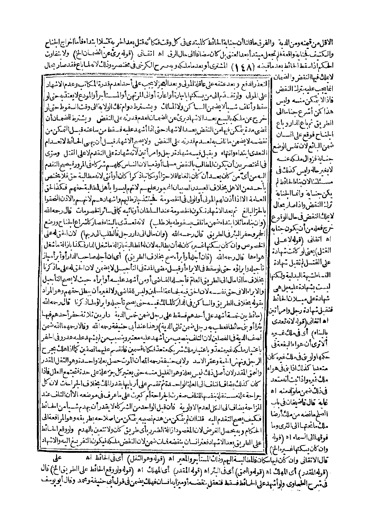 ـــــــــــــــــــــــــــــQالْأَقَلُّ مِنْ قِيمَتِهِ وَمِنْ الدِّيَةِ، وَالْفَرْقُ مَا قُلْنَا أَنَّ جِنَايَةَ الْحَائِطِ كَالْمُبْتَدِئِ فِي كُلِّ وَقْتٍ فَكَأَنَّهُ قَتَلَ بَعْدَ الْحُرِّيَّةِ قَتِيلًا ابْتِدَاءً فَأَمَّا إخْرَاجُ الْجَنَاحِ وَالْكَنِيفِ فَجِنَايَةٌ وَاقِعَةٌ فَلَمْ تُجْعَلْ مُبْتَدَأً بَعْدَ الْعِتْقِ، بَلْ كَانَ مُضَافًا إلَى حَالِ الرِّقِّ. اهـ. أَتْقَانِيٌّ (قَوْلُهُ: بَرِئَ عَنْ الضَّمَانِ إلَخْ) وَلَا يَتَفَاوَتُ الْحُكْمُ إذَا سَقَطَ الْحَائِطُ بَعْدَمَا قَبَضَهُ الْمُشْتَرِي أَوْ بَعْدَمَا مَلَكَهُ وَبِهِ صَرَّحَ الْكَرْخِيُّ فِي مُخْتَصَرِهِ وَذَلِكَ لِأَنَّهُ لَمَّا بَاعَ فَقَدْ صَارَ بِحَالٍ لَا يَمْلِكُ فِيهَا النَّقْضَ وَالضَّمَانُ إنَّمَا يَجِبُ عَلَيْهِ بِتَرْكِ النَّقْضِ فَإِذًا لَا يَتَمَكَّنُ مِنْهُ، وَلَيْسَ هَذَا كَمَنْ أَشْرَعَ جَنَاحًا إلَى الطَّرِيقِ، ثُمَّ بَاعَ الدَّارَ وَبَاعَ الْجَنَاحَ فَوَقَعَ عَلَى إنْسَانٍ ضَمِنَ الْبَائِعُ؛ لِأَنَّ نَفْسَ الْوَضْعِ جِنَايَةٌ فَزَوَالُ مِلْكِهِ عَنْهُ لَا يُغَيِّرُ، وَلَيْسَ كَذَلِكَ فِي مَسْأَلَتِنَا؛ لِأَنَّ بِنَاءَ الْحَائِطِ لَمْ يَكُنْ جِنَايَةً وَإِنَّمَا الْجِنَايَةُ تَرْكُ النَّقْضِ، وَإِذَا صَارَ بِحَالٍ لَا يَمْلِكُ النَّقْضَ فِي حَالِ الْوُقُوعِ خَرَجَ فِعْلُهُ مِنْ أَنْ يَكُونَ جِنَايَةً. اهـ. أَتْقَانِيٌّ (قَوْلُهُ: لَا عَلَى الْقَتْلِ) يَعْنِي لَوْ كَانَتْ شَهَادَةً عَلَى الْقَتْلِ لَمْ تُقْبَلْ شَهَادَةُ النِّسَاءِ لِشُبْهَةِ الْبَدَلِيَّةِ وَلَكِنَّهَا لَيْسَتْ بِشَهَادَةٍ عَلَيْهِ، بَلْ هِيَ شَهَادَةٌ عَلَى مَيَلَانِ الْحَائِطِ فَتُقْبَلُ شَهَادَةُ رَجُلٍ وَامْرَأَتَيْنِ اهـ
