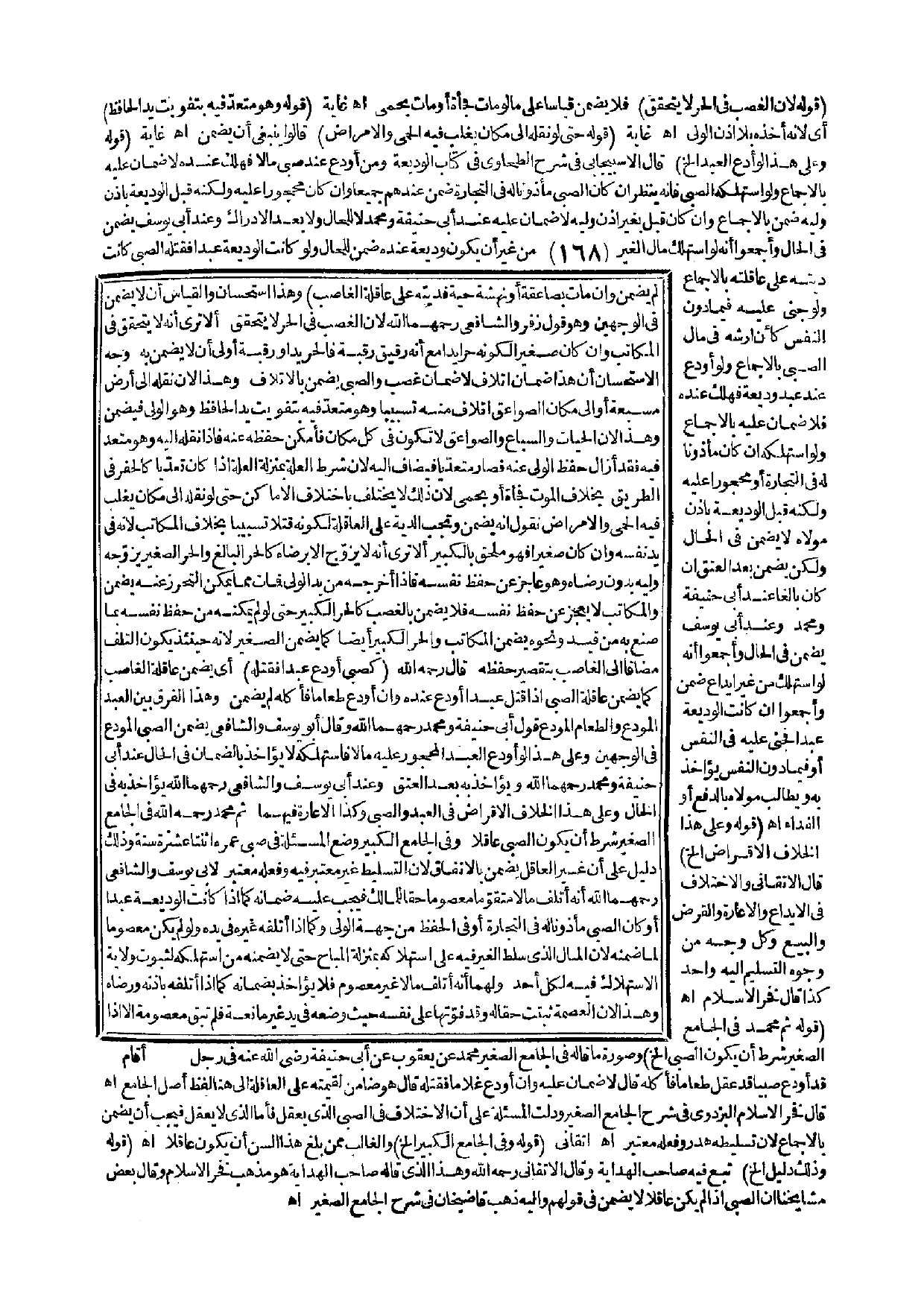 وَأَجْمَعُوا أَنَّهُ لَوْ اسْتَهْلَكَ مِنْ غَيْرِ إيدَاعٍ ضَمِنَ وَأَجْمَعُوا إنْ كَانَتْ الْوَدِيعَةُ عَبْدًا فَجَنَى عَلَيْهِ فِي النَّفْسِ أَوْ فِيمَا دُونَ النَّفْسِ يُؤَاخَذُ بِهِ وَيُطَالِبُ مَوْلَاهُ بِالدَّفْعِ أَوْ الْفِدَاءِ اهـ (قَوْلُهُ وَعَلَى هَذَا الْخِلَافِ الْإِقْرَاضُ إلَخْ) قَالَ الْأَتْقَانِيُّ وَالِاخْتِلَافُ فِي الْإِيدَاعِ وَالْإِعَارَةِ وَالْقَرْضِ وَالْبَيْعِ وَكُلِّ وَجْهٍ مِنْ وُجُوهِ التَّسْلِيمِ إلَيْهِ وَاحِدٌ كَذَا قَالَ فَخْرُ الْإِسْلَامِ. اهـ. (قَوْلُهُ ثُمَّ مُحَمَّدٌ فِي الْجَامِعِ الصَّغِيرِ شَرَطَ أَنْ يَكُونَ الصَّبِيُّ إلَخْ) وَصُورَةُ مَا قَالَهُ فِي الْجَامِعِ الصَّغِيرِ مُحَمَّدٌ عَنْ يَعْقُوبَ عَنْ أَبِي حَنِيفَةَ - رَضِيَ اللَّهُ عَنْهُ - فِي رَجُلٍ قَدْ أَوْدَعَ صَبِيًّا قَدْ عَقَلَ طَعَامًا فَأَكَلَهُ قَالَ لَا ضَمَانَ عَلَيْهِ وَإِنْ أَوْدَعَ غُلَامًا مَا فَقَتَلَهُ قَالَ هُوَ ضَامِنٌ لِقِيمَتِهِ عَلَى الْعَاقِلَةِ إلَى هُنَا لَفْظُ أَصْلِ الْجَامِعِ اهـ قَالَ فَخْرُ الْإِسْلَامِ الْبَزْدَوِيُّ فِي شَرْحِ الْجَامِعِ الصَّغِيرِ وَدَلَّتْ الْمَسْأَلَةُ عَلَى أَنَّ الِاخْتِلَافَ فِي الصَّبِيِّ الَّذِي يَعْقِلُ فَأَمَّا الَّذِي لَا يَعْقِلُ فَيَجِبُ أَنْ يَضْمَنَ بِالْإِجْمَاعِ لِأَنَّ تَسْلِيطَهُ هَدَرٌ وَفِعْلُهُ مُعْتَبَرٌ اهـ أَتْقَانِيٌّ (قَوْلُهُ وَفِي الْجَامِعِ الْكَبِيرِ إلَخْ) وَالْغَالِبُ مِمَّنْ بَلَغَ هَذَا السِّنَّ أَنْ يَكُونَ عَاقِلًا اهـ.