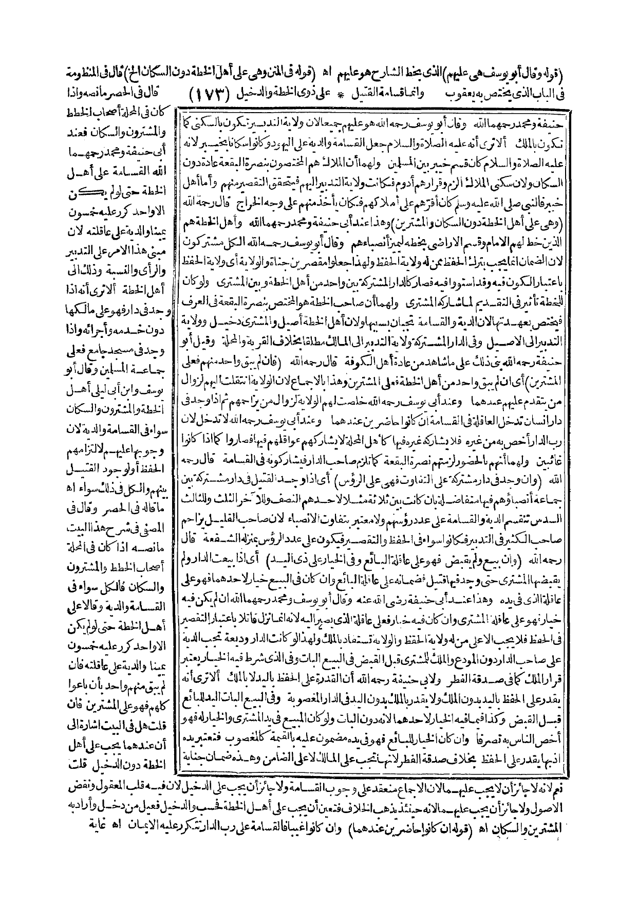 (قَوْلُهُ فِي الْمَتْنِ وَهِيَ عَلَى أَهْلِ الْخُطَّةِ دُونَ السُّكَّانِ إلَخْ) قَالَ فِي الْمَنْظُومَةِ فِي الْبَابِ الَّذِي يَخْتَصُّ بِهِ يَعْقُوبُ