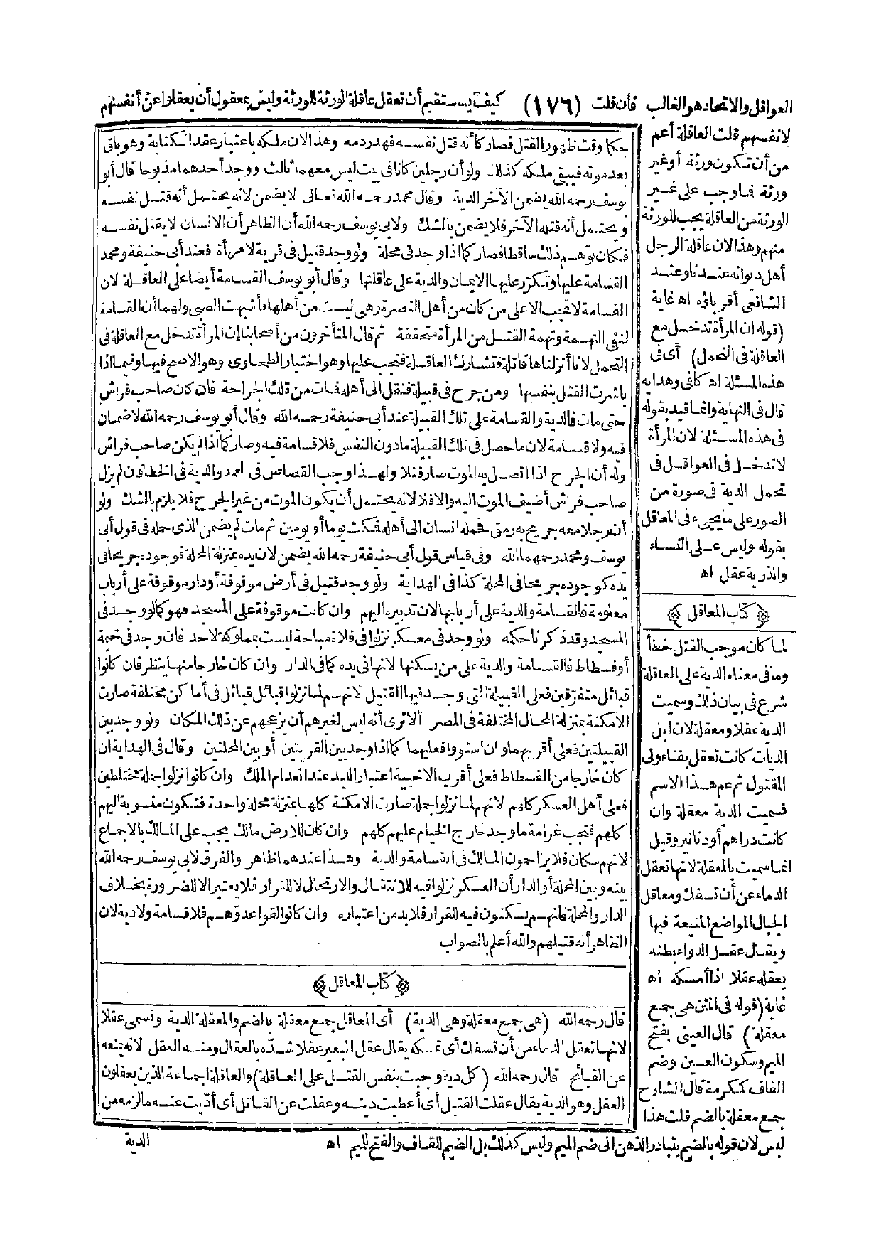 (كِتَابُ الْمَعَاقِلِ) قَالَ - رَحِمَهُ اللَّهُ - (هِيَ جَمْعُ مَعْقُلَةٍ وَهِيَ الدِّيَةُ) أَيْ الْمَعَاقِلُ جَمْعُ مَعْقُلَةٍ بِالضَّمِّ وَالْمَعْقُلَةُ الدِّيَةُ وَتُسَمَّى عَقْلًا؛ لِأَنَّهَا تَعْقِلُ الدِّمَاءَ مِنْ أَنْ تُسْفَكَ أَيْ تُمْسِكَهُ يُقَالُ عَقَلَ الْبَعِيرُ عَقْلًا شَدَّهُ بِالْعِقَالِ وَمِنْهُ الْعَقْلُ؛ لِأَنَّهُ يَمْنَعُهُ عَنْ الْقَبَائِحِ.