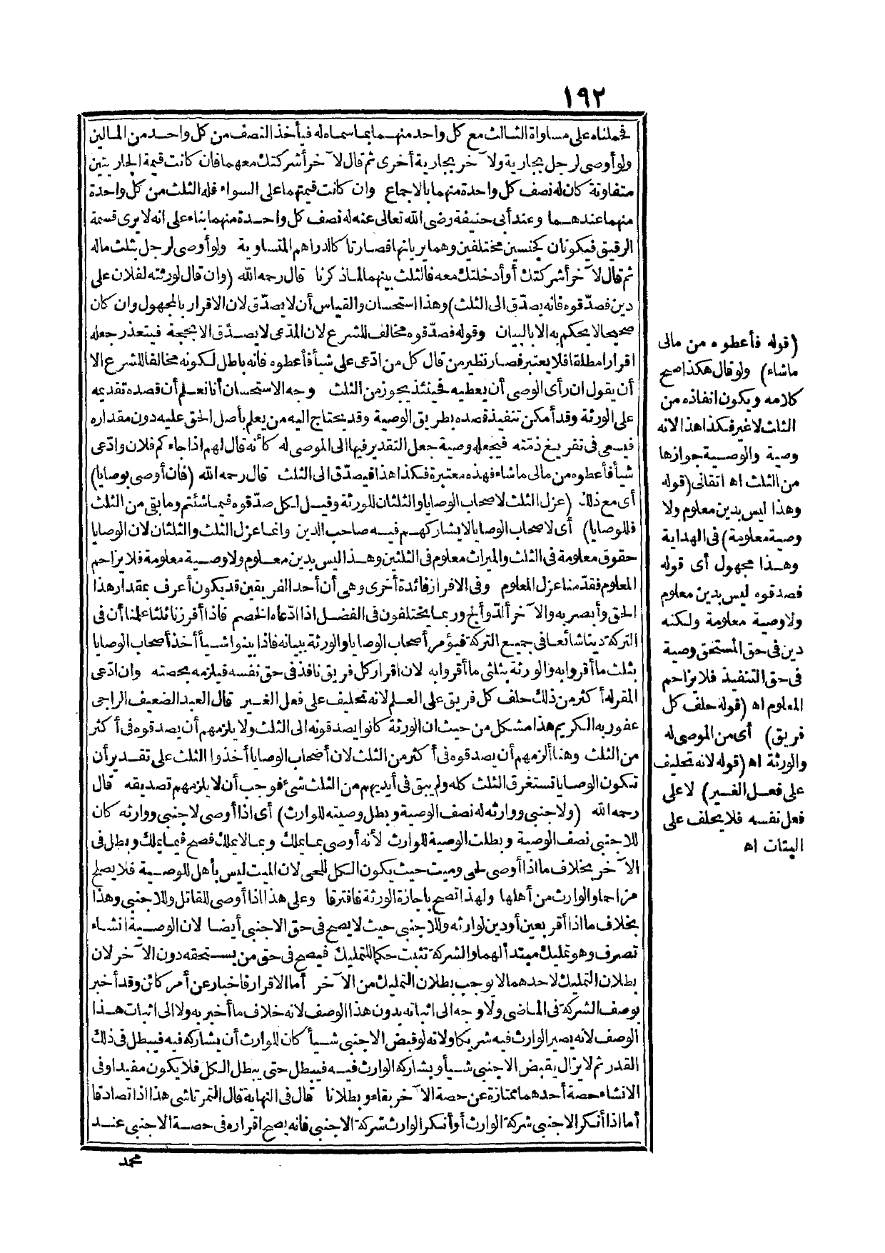 فَحَمَلْنَاهُ عَلَى مُسَاوَاةِ الثَّالِثِ مَعَ كُلِّ وَاحِدٍ مِنْهُمَا بِمَا سَمَّاهُ لَهُ فَيَأْخُذُ النِّصْفَ مِنْ كُلِّ وَاحِدٍ مِنْ الْمَالَيْنِ، وَلَوْ أَوْصَى لِرَجُلٍ بِجَارِيَةٍ وَلِآخَرَ بِجَارِيَةٍ أُخْرَى ثُمَّ قَالَ لِآخَرَ أَشْرَكْتُك مَعَهُمَا فَإِنْ كَانَتْ قِيمَةُ الْجَارِيَتَيْنِ مُتَفَاوِتَةً كَانَ لَهُ نِصْفُ كُلِّ وَاحِدَةٍ مِنْهُمَا بِالْإِجْمَاعِ وَإِنْ كَانَتْ قِيمَتُهُمَا عَلَى السَّوَاءِ فَلَهُ الثُّلُثُ مِنْ كُلِّ وَاحِدَةٍ مِنْهُمَا عِنْدَهُمَا وَعِنْدَ أَبِي حَنِيفَةَ - رَضِيَ اللَّهُ تَعَالَى عَنْهُ - لَهُ نِصْفُ كُلِّ وَاحِدٍ مِنْهُمَا بِنَاءً عَلَى أَنَّهُ لَا يَرَى قِسْمَةَ الرَّقِيقِ فَيَكُونَانِ كَجِنْسَيْنِ مُخْتَلِفَيْنِ وَهُمَا يَرَيَانِهَا فَصَارَتَا كَالدَّرَاهِمِ الْمُتَسَاوِيَةِ، وَلَوْ أَوْصَى لِرَجُلٍ بِثُلُثِ مَالِهِ ثُمَّ قَالَ لِآخَرَ أَشْرَكْتُك أَوْ أَدْخَلْتُك مَعَهُ فَالثُّلُثُ بَيْنَهُمَا لِمَا ذَكَرْنَا.