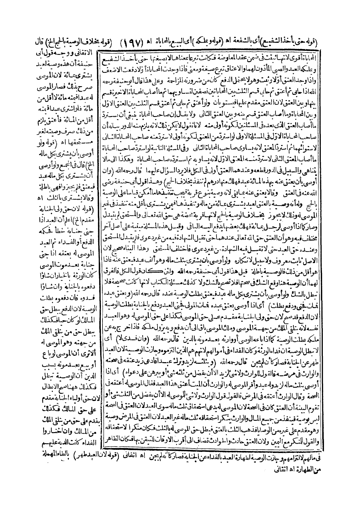 قَالَ - رَحِمَهُ اللَّهُ - (وَإِنْ أَوْصَى بِأَنْ يُعْتَقَ عَنْهُ بِهَذِهِ الْمِائَةِ عَبْدٌ فَهَلَكَ مِنْهَا دِرْهَمٌ لَمْ تَنْفُذْ بِخِلَافِ الْحَجِّ)، وَهَذَا قَوْلُ أَبِي حَنِيفَةَ - رَضِيَ اللَّهُ عَنْهُ - فِي الْعِتْقِ، وَقَالَا يُعْتَقُ عَنْهُ بِمَا بَقِيَ؛ لِأَنَّهُ وَصِيَّةٌ بِنَوْعِ قُرْبَةٍ فَيَجِبُ تَنْفِيذُهَا مَا أَمْكَنَ قِيَاسًا عَلَى الْوَصِيَّةِ بِالْحَجِّ وَلَهُ أَنَّهُ وَصِيَّةٌ بِالْعِتْقِ لِعَبْدٍ يَشْتَرِي بِمِائَةٍ مِنْ مَالِهِ وَتَنْفِيذُهَا فِيمَنْ يَشْتَرِي بِأَقَلَّ مِنْهُ تَنْفِيذٌ فِي غَيْرِ الْمُوصَى لَهُ، وَذَلِكَ لَا يَجُوزُ بِخِلَافِ الْوَصِيَّةِ بِالْحَجِّ؛ لِأَنَّهَا قُرْبَةٌ مَحْضَةٌ هِيَ حَقُّ اللَّهِ تَعَالَى وَالْمُسْتَحَقُّ لَمْ يَتَبَدَّلْ وَصَارَ كَمَا إذَا أَوْصَى لِرَجُلٍ بِمِائَةٍ فَهَلَكَ بَعْضُهَا يَدْفَعُ إلَيْهِ الْبَاقِيَ وَقِيلَ هَذِهِ الْمَسْأَلَةُ مَبْنِيَّةٌ عَلَى أَصْلٍ آخَرَ مُخْتَلَفٌ فِيهِ وَهُوَ أَنَّ الْعِتْقَ حَقُّ اللَّهِ تَعَالَى عِنْدَهُمَا حَتَّى تُقْبَلَ الشَّهَادَةُ فِيهِ مِنْ غَيْرِ دَعْوَى فَلَمْ يَتَبَدَّلْ الْمُسْتَحَقُّ وَعِنْدَهُ حَقُّ الْعَبْدِ حَتَّى لَا تُقْبَلَ فِيهِ الشَّهَادَةُ مِنْ غَيْرِ دَعْوَى فَاخْتَلَفَ الْمُسْتَحَقُّ، وَهَذَا الْبِنَاءُ صَحِيحٌ؛ لِأَنَّ الْأَصْلَ ثَابِتٌ مَعْرُوفٌ وَلَا سَبِيلَ لِإِنْكَارِهِ، وَلَوْ أَوْصَى بِأَنْ يُشْتَرَى بِثُلُثِ مَالِهِ وَهُوَ أَلْفٌ عَبْدٌ فَيُعْتَقَ عَنْهُ فَإِذَا هُوَ أَقَلُّ مِنْ ذَلِكَ فَالْوَصِيَّةُ بَاطِلَةٌ قِيلَ هَذَا قَوْلُ أَبِي حَنِيفَةَ - رَحِمَهُ اللَّهُ - وَلَئِنْ كَانَ قَوْلَ الْكُلِّ فَالْفَرْقُ لَهُمَا أَنَّ الْوَصِيَّةَ هُنَا وَقَعَ الشَّكُّ فِي صِحَّتِهَا فَلَا تَصِحُّ بِالشَّكِّ وَلَا كَذَلِكَ مَسْأَلَةُ الْكِتَابِ؛ لِأَنَّهَا كَانَتْ صَحِيحَةً فَلَا تَبْطُلُ بِالشَّكِّ، وَلَوْ أَوْصَى بِأَنْ يُشْتَرَى بِكُلِّ مَالِهِ عَبْدٌ فَيَعْتِقُ بَطَلَتْ الْوَصِيَّةُ عِنْدَهُ.