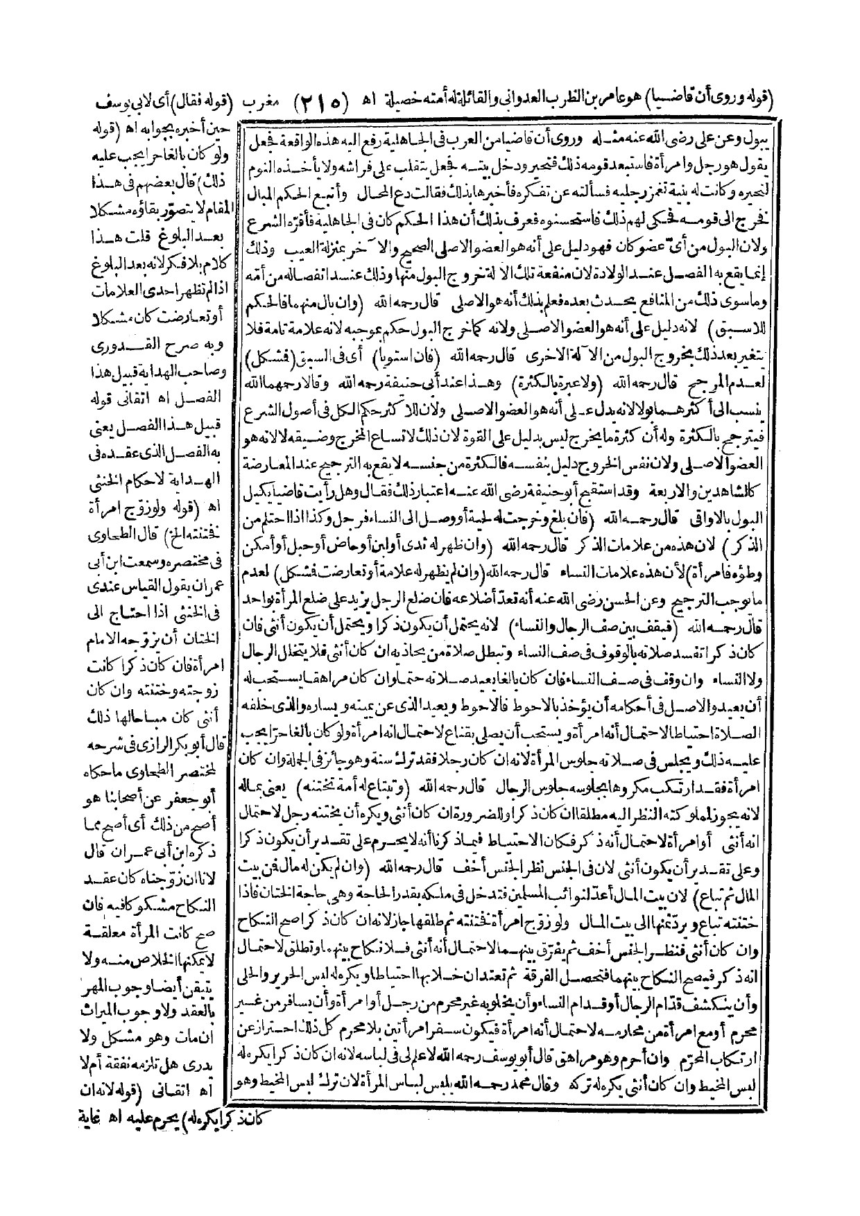 ـــــــــــــــــــــــــــــ Q ( قَوْلُهُ وَرُوِيَ أَنَّ قَاضِيًا) هُوَ عَامِرُ بْنُ الظَّرِبِ الْعَدْوَانِيُّ وَالْقَائِلَةُ لَهُ أَمَتُهُ خَصِيلَةُ. اهـ. مُغْرِبٌ (قَوْلُهُ فَقَالَ) أَيْ لِأَبِي يُوسُفَ حِينَ أَخْبَرَهُ بِجَوَابِهِ. اهـ. (قَوْلُهُ وَلَوْ كَانَ بَالِغًا حُرًّا يَجِبُ عَلَيْهِ ذَلِكَ) قَالَ بَعْضُهُمْ فِي هَذَا الْمَقَامِ لَا يُتَصَوَّرُ بَقَاؤُهُ مُشْكِلًا بَعْدَ الْبُلُوغِ قُلْت هَذَا كَلَامٌ بِلَا فِكْرٍ لِأَنَّهُ بَعْدَ الْبُلُوغِ إذَا لَمْ تَظْهَرْ إحْدَى الْعَلَامَاتِ أَوْ تَعَارَضَتْ كَانَ مُشْكِلًا وَبِهِ صَرَّحَ الْقُدُورِيُّ وَصَاحِبُ الْهِدَايَةِ قُبَيْلَ هَذَا الْفَصْلِ. اهـ. أَتْقَانِيٌّ قَوْلُهُ قُبَيْلَ هَذَا الْفَصْلِ يَعْنِي بِهِ الْفَصْلَ الَّذِي عَقَدَهُ فِي الْهِدَايَةِ لِأَحْكَامِ الْخُنْثَى. اهـ.