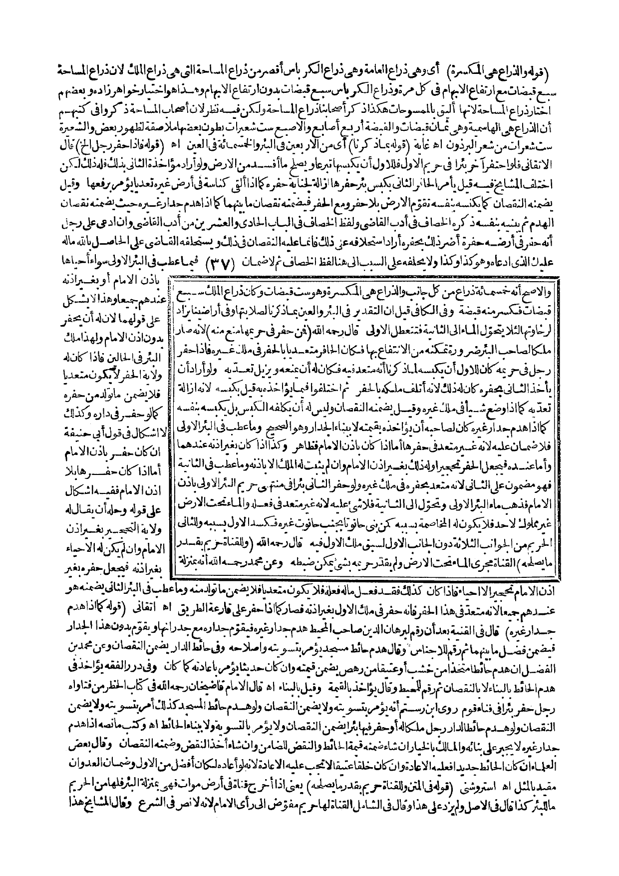 ـــــــــــــــــــــــــــــQقَوْلُهُ: وَالذِّرَاعُ هِيَ الْمُكَسَّرَةُ) أَيْ، وَهِيَ ذِرَاعُ الْعَامَّةِ، وَهِيَ ذِرَاعُ الْكِرْبَاسِ أَقْصَرُ مِنْ ذِرَاعِ الْمِسَاحَةِ الَّتِي هِيَ ذِرَاعُ الْمِلْكِ؛ لِأَنَّ ذِرَاعَ الْمِسَاحَةِ سَبْعُ قَبَضَاتٍ مَعَ ارْتِفَاعِ الْإِبْهَامِ فِي كُلِّ مَرَّةٍ، وَذِرَاعَ الْكِرْبَاسِ سَبْعُ قَبَضَاتٍ بِدُونِ ارْتِفَاعِ الْإِبْهَامِ، وَهَذَا هُوَ اخْتِيَارُ خُوَاهَرْزَادَهْ وَبَعْضُهُمْ اخْتَارَ ذِرَاعَ الْمِسَاحَةِ؛ لِأَنَّهَا أَلْيَقُ بِالْمَمْسُوحَاتِ هَكَذَا ذَكَرَ أَصْحَابُنَا ذِرَاعَ الْمِسَاحَةِ، وَلَكِنْ فِيهِ نَظَرٌ؛ لِأَنَّ أَصْحَابَ الْمِسَاحَةِ ذَكَرُوا فِي كُتُبِهِمْ أَنَّ الذِّرَاعَ هِيَ الْهَاشِمِيَّةُ، وَهِيَ ثَمَانُ قَبَضَاتٍ وَالْقَبْضَةُ أَرْبَعُ أَصَابِعَ وَالْأُصْبُعُ سِتُّ شُعَيْرَاتِ بُطُونُ بَعْضِهَا مُلَاصِقَةٌ لِظُهُورِ بَعْضٍ وَالشُّعَيْرَةُ سِتُّ شَعَرَاتٍ مِنْ شَعْرِ الْبِرْذَوْنِ. اهـ غَايَةٌ. (قَوْلُهُ: بِمَا ذَكَرْنَا) أَيْ مِنْ الْأَرْبَعِينَ فِي الْبِئْرِ وَالْخَمْسِمِائَةِ فِي الْعَيْنِ. اهـ.