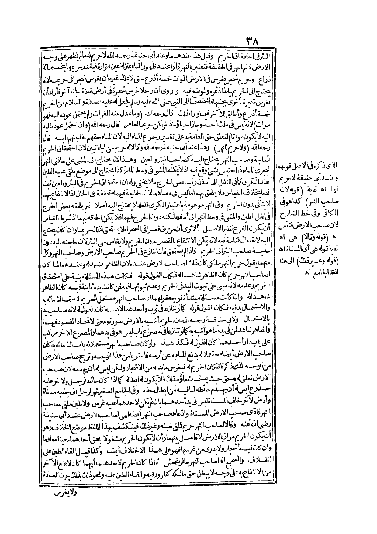 ـــــــــــــــــــــــــــــQالَّذِي ذَكَرَهُ فِي الْأَصْلِ قَوْلُهُمَا، وَعِنْدَ أَبِي حَنِيفَةَ لَا حَرِيمَ لَهَا. اهـ غَايَةٌ.