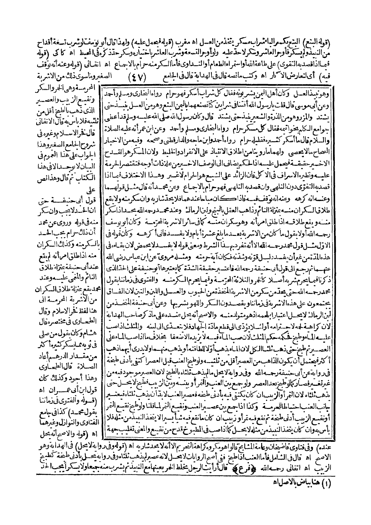 وَهُوَ نَبِيذُ الْعَسَلِ وَكَانَ أَهْلُ الْيَمَنِ يَشْرَبُونَهُ فَقَالَ كُلُّ شَرَابٍ أَسْكَرَ فَهُوَ حَرَامٌ» رَوَاهُ الْبُخَارِيُّ وَمُسْلِمٌ وَأَحْمَدُ وَعَنْ أَبِي مُوسَى قَالَ قُلْت «يَا رَسُولَ اللَّهِ أَفْتِنَا فِي شَرَابَيْنِ كُنَّا نَصْنَعُهُمَا بِالْيَمَنِ الْبِتْعِ، وَهُوَ مِنْ الْعَسَلِ يُنْبَذُ حَتَّى يَشْتَدَّ وَالْمِزْرِ، وَهُوَ مِنْ الذُّرَةِ وَالشَّعِيرِ يُنْبَذُ حَتَّى يَشْتَدَّ قَالَ وَكَانَ رَسُولُ اللَّهِ - صَلَّى اللَّهُ عَلَيْهِ وَسَلَّمَ - قَدْ أُعْطِيَ جَوَامِعَ الْكَلِمِ بِخَوَاتِيمِهِ فَقَالَ كُلُّ مُسْكِرٍ حَرَامٌ» رَوَاهُ الْبُخَارِيُّ وَمُسْلِمٌ وَأَحْمَدُ