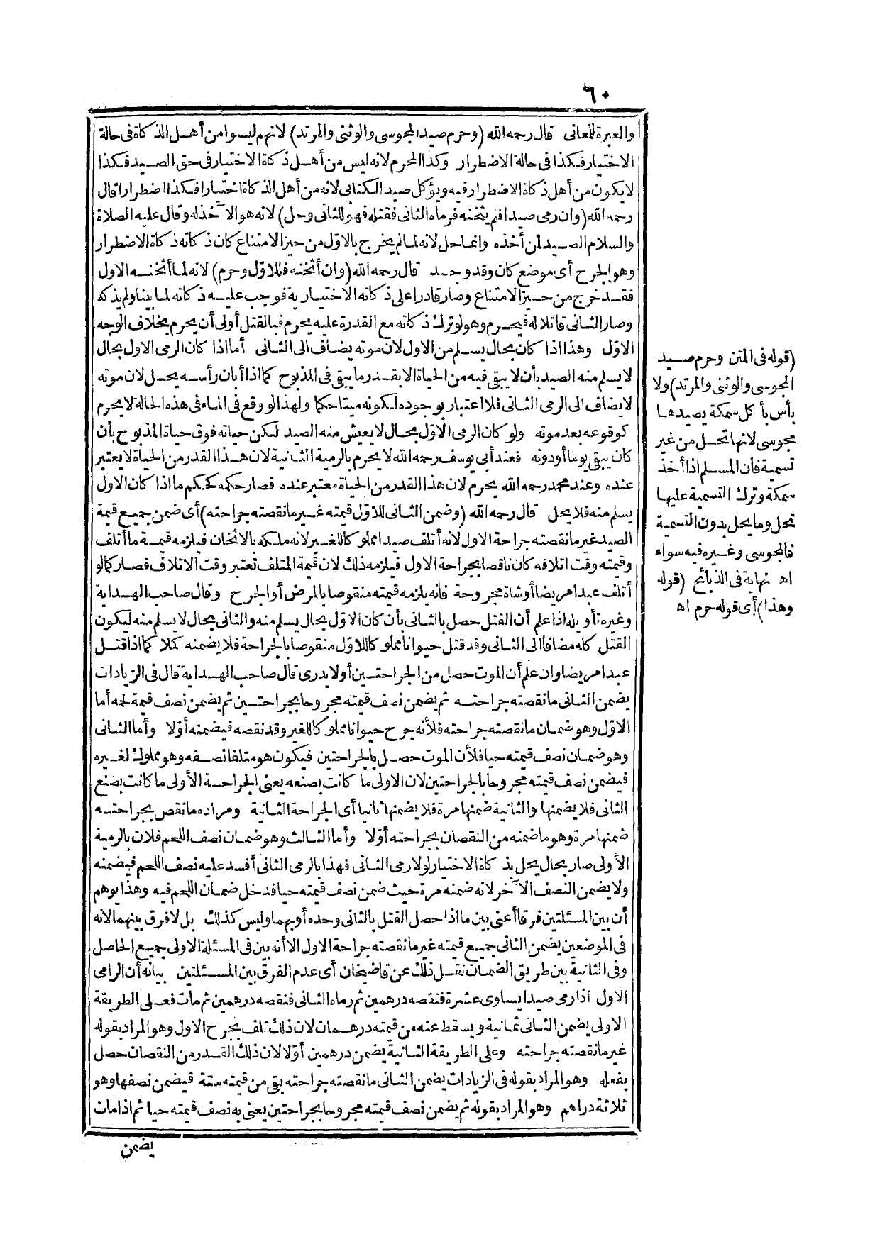 وَعِنْدَ مُحَمَّدٍ - رَحِمَهُ اللَّهُ - يَحْرُمُ؛ لِأَنَّ هَذَا الْقَدْرَ مِنْ الْحَيَاةِ مُعْتَبَرٌ عِنْدَهُ فَصَارَ حُكْمُهُ كَحُكْمِ مَا إذَا كَانَ الْأَوَّلُ يَسْلَمُ مِنْهُ فَلَا يَحِلُّ قَالَ - رَحِمَهُ اللَّهُ - (وَضَمِنَ الثَّانِي لِلْأَوَّلِ قِيمَتَهُ غَيْرَ مَا نَقَصَتْهُ جِرَاحَتُهُ) أَيْ ضَمِنَ جَمِيعَ قِيمَةِ الصَّيْدِ غَيْرَ مَا نَقَصَتْهُ جِرَاحَةُ الْأَوَّلِ؛ لِأَنَّهُ أَتْلَفَ صَيْدًا مَمْلُوكًا لِلْغَيْرِ؛ لِأَنَّهُ مَلَكَهُ بِالْإِثْخَانِ فَيَلْزَمُهُ قِيمَةُ مَا أَتْلَفَ وَقِيمَتُهُ وَقْتَ إتْلَافِهِ كَانَ نَاقِصًا بِجِرَاحَةِ الْأَوَّلِ فَيَلْزَمُهُ ذَلِكَ؛ لِأَنَّ قِيمَةَ الْمُتْلَفِ تُعْتَبَرُ وَقْتَ الْإِتْلَافِ فَصَارَ كَمَا لَوْ أَتْلَفَ عَبْدًا مَرِيضًا أَوْ شَاةً مَجْرُوحَةً، فَإِنَّهُ يَلْزَمُهُ قِيمَتُهُ مَنْقُوصًا بِالْمَرَضِ أَوْ الْجُرْحِ وَقَالَ صَاحِبُ الْهِدَايَةِ وَغَيْرُهُ تَأْوِيلُهُ إذَا عَلِمَ أَنَّ الْقَتْلَ حَصَلَ بِالثَّانِي بِأَنْ كَانَ الْأَوَّلُ بِحَالٍ يَسْلَمُ مِنْهُ وَالثَّانِي بِحَالٍ لَا يَسْلَمُ مِنْهُ لِيَكُونَ الْقَتْلُ كُلُّهُ مُضَافًا إلَى الثَّانِي، وَقَدْ قَتَلَ حَيَوَانًا مَمْلُوكًا لِلْأَوَّلِ مَنْقُوصًا بِالْجِرَاحَةِ فَلَا يَضْمَنُهُ كَمَلًا كَمَا إذَا قَتَلَ عَبْدًا مَرِيضًا، وَإِنْ عَلِمَ أَنَّ الْمَوْتَ حَصَلَ مِنْ الْجِرَاحَتَيْنِ أَوْ لَا يَدْرِي قَالَ صَاحِبُ الْهِدَايَةِ: قَالَ فِي الزِّيَادَاتِ يَضْمَنُ الثَّانِي مَا نَقَصَتْهُ جِرَاحَتُهُ ثُمَّ يَضْمَنُ نِصْفَ قِيمَتِهِ مَجْرُوحًا بِجِرَاحَتَيْنِ ثُمَّ يَضْمَنُ نِصْفَ قِيمَةِ لَحْمِهِ