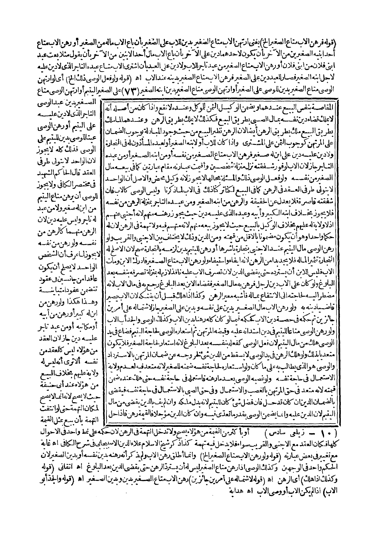 ـــــــــــــــــــــــــــــQقَوْلُهُ فَرَهَنَ الْأَبُ مَتَاعَ الصَّغِيرِ إلَخْ) يَعْنِي ارْتَهَنَ الْأَبُ مَتَاعَ الصَّغِيرِ بِدَيْنٍ لِلْأَبِ عَلَى الصَّغِيرِ بِأَنْ بَاعَ الْأَبُ مَالَهُ مِنْ الصَّغِيرِ أَوْ رَهَنَ الْأَبُ مَتَاعَ أَحَدِ ابْنَيْهِ الصَّغِيرَيْنِ مِنْ الْآخَرِ بِأَنْ يَكُونَ لِأَحَدِهِمَا دَيْنٌ عَلَى الْآخَرِ بِأَنْ بَاعَ الْأَبُ مَالَ أَحَدِ الِابْنَيْنِ مِنْ الْآخَرِ بِأَنْ يَقُولَ مَثَلًا بِعْتُ عَبْدَ ابْنِي فُلَانٍ مِنْ ابْنِي فُلَانٍ، أَوْ رَهَنَ الْأَبُ مَتَاعَ الصَّغِيرِ مِنْ عَبْدٍ تَاجِرٍ لِلْأَبِ وَلَا دَيْنَ عَلَى الْعَبْدِ بِأَنْ اشْتَرَى الْأَبُ مَتَاعَ عَبْدِهِ التَّاجِرِ الَّذِي لَا دَيْنَ عَلَيْهِ لِأَجْلِ ابْنِهِ الصَّغِيرِ، فَصَارَ لِلْعَبْدِ دَيْنٌ عَلَى الصَّغِيرِ فَرَهَنَ الْأَبُ مَتَاعَ الصَّغِيرِ بِدَيْنِهِ عِنْدَ الْأَبِ. اهـ. (قَوْلُهُ وَلَوْ فَعَلَ الْوَصِيُّ ذَلِكَ إلَخْ) أَيْ لَوْ ارْتَهَنَ الْوَصِيُّ مَتَاعَ الصَّغِيرِ بِدَيْنٍ لِلْوَصِيِّ عَلَى الصَّغِيرِ أَوْ ارْتَهَنَ الْوَصِيُّ مَتَاعَ الصَّغِيرِ بِدَيْنِ ابْنِهِ الصَّغِيرِ عَلَى الصَّغِيرِ الْيَتِيمِ أَوْ ارْتَهَنَ الْوَصِيُّ مَتَاعَ الصَّغِيرِ بِدَيْنِ عَبْدِ الْوَصِيِّ التَّاجِرِ الَّذِي لَا دَيْنَ عَلَيْهِ عَلَى الْيَتِيمِ أَوْ رَهَنَ الْوَصِيُّ عَيْنًا لِلْوَصِيِّ بِدَيْنٍ لِلْيَتِيمِ عَلَى الْوَصِيِّ، فَذَلِكَ كُلُّهُ لَا يَجُوزُ؛ لِأَنَّ الْوَاحِدَ لَا يَتَوَلَّى طَرَفَيْ الْعَقْدِ قَالَ الْحَاكِمُ الشَّهِيدُ فِي مُخْتَصَرِ الْكَافِي: وَلَا يَجُوزُ لِلْوَصِيِّ أَنْ يَرْهَنَ مَتَاعَ الْيَتِيمِ مِنْ ابْنٍ لَهُ صَغِيرٍ وَلَا مِنْ عَبْدٍ لَهُ تَاجِرٍ وَلَيْسَ عَلَيْهِ دَيْنٌ؛ لِأَنَّ الرَّهْنَ مِنْهُمَا كَالرَّهْنِ مِنْ نَفْسِهِ، وَلَوْ رَهَنَ مِنْ نَفْسِهِ لَا يَجُوزُ لِمَا عُرِفَ أَنَّ الشَّخْصَ الْوَاحِدَ لَا يَصْلُحُ أَنْ يَكُونَ عَاقِدًا مِنْ جَانِبَيْنِ فِي عُقُودٍ تَتَضَمَّنُ عُقُودًا مُتَبَايِنَةً، وَهَذَا هَكَذَا وَلَوْ رَهَنَ مِنْ ابْنٍ لَهُ كَبِيرٍ أَوْ رَهَنَ مِنْ أَبِيهِ أَوْ مُكَاتَبِهِ أَوْ مِنْ عَبْدٍ تَاجِرٍ عَلَيْهِ دَيْنٌ جَازَ؛ لِأَنَّ الْعَقْدَ مِنْ هَؤُلَاءِ لَيْسَ كَالْعَقْدِ مِنْ نَفْسِهِ