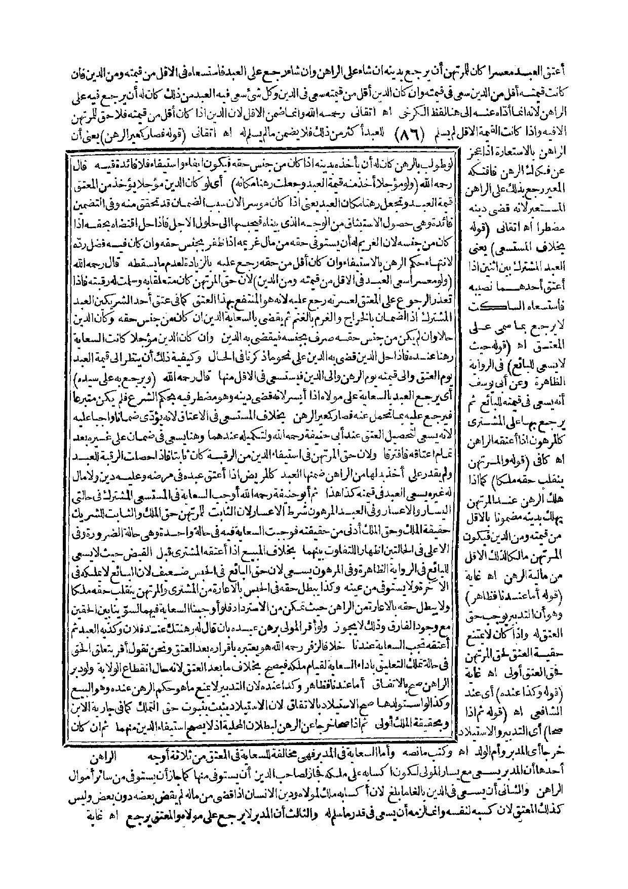 ـــــــــــــــــــــــــــــQأَعْتَقَ الْعَبْدَ مُعْسِرًا كَانَ لِلْمُرْتَهِنِ أَنْ يَرْجِعَ بِدَيْنِهِ إنْ شَاءَ عَلَى الرَّاهِنِ، وَإِنْ شَاءَ رَجَعَ عَلَى الْعَبْدِ فَاسْتَسْعَاهُ فِي الْأَقَلِّ مِنْ قِيمَتِهِ وَمِنْ الدَّيْنِ فَإِنْ كَانَتْ قِيمَتُهُ أَقَلَّ مِنْ الدَّيْنِ سَعَى فِي قِيمَتِهِ، وَإِنْ كَانَ الدَّيْنُ أَقَلَّ مِنْ قِيمَتِهِ سَعَى فِي الدَّيْنِ وَكُلُّ شَيْءٍ سَعَى فِيهِ الْعَبْدُ مِنْ ذَلِكَ كَانَ لَهُ أَنْ يَرْجِعَ فِيهِ عَلَى الرَّاهِنِ؛ لِأَنَّهُ إنَّمَا أَدَّاهُ عَنْهُ إلَى هُنَا لَفْظُ الْكَرْخِيِّ اهـ أَتْقَانِيٌّ - رَحِمَهُ اللَّهُ -، وَإِنَّمَا ضَمِنَ الْأَقَلَّ؛ لِأَنَّ الدَّيْنَ إذَا كَانَ أَقَلَّ مِنْ قِيمَتِهِ فَلَا حَقَّ لِلْمُرْتَهِنِ إلَّا فِيهِ، وَإِذَا كَانَتْ الْقِيمَةُ الْأَقَلَّ لَمْ يَسْلَمْ لِلْعَبْدِ أَكْثَرُ مِنْ ذَلِكَ فَلَا يَضْمَنُ مَا لَمْ يَسْلَمْ لَهُ. اهـ. أَتْقَانِيٌّ (قَوْلُهُ فَصَارَ كَمُعِيرِ الرَّهْنِ) يَعْنِي أَنَّ الرَّاهِنَ بِالِاسْتِعَارَةِ إذَا عَجَزَ عَنْ فِكَاكِ الرَّهْنِ فَافْتَكَّهُ الْمُعِيرُ رَجَعَ بِذَلِكَ عَلَى الرَّاهِنِ الْمُسْتَعِيرِ؛ لِأَنَّهُ قَضَى دَيْنَهُ مُضْطَرًّا. اهـ. أَتْقَانِيٌّ (قَوْلُهُ بِخِلَافِ الْمُسْتَسْعَى) يَعْنِي الْعَبْدَ الْمُشْتَرَكَ بَيْنَ اثْنَيْنِ إذَا أَعْتَقَ أَحَدُهُمَا نَصِيبَهُ فَاسْتَسْعَاهُ السَّاكِتُ لَا يَرْجِعُ بِمَا سَمَّى عَلَى الْمُعْتِقِ. اهـ. (قَوْلُهُ حَيْثُ لَا يَسْعَى لِلْبَائِعِ) فِي الرِّوَايَةِ الظَّاهِرَةِ وَعَنْ أَبِي يُوسُفَ أَنَّهُ يَسْعَى فِي قِيمَتِهِ لِلْبَائِعِ ثُمَّ يَرْجِعُ بِهَا عَلَى الْمُشْتَرِي كَالْمَرْهُونِ إذَا أَعْتَقَهُ الرَّاهِنُ. اهـ. كَافِي.