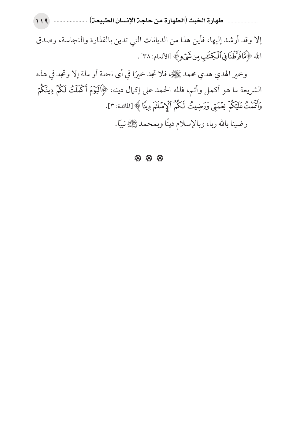 إلا وقد أرشد إليها، فأين هذا من الديانات التي تدين بالقذارة والنجاسة، وصدق الله (مَّا فَرَّطْنَا فِي الكِتَابِ مِن شَيْءٍ) [الأنعام: ٣٨].