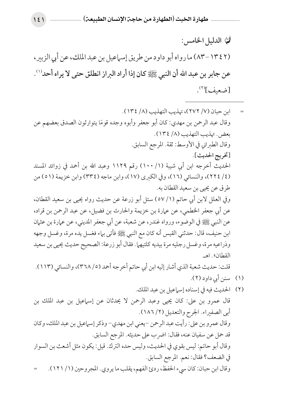(١٣٤٢ - ٨٣) ما رواه أبو داود من طريق إسماعيل بن عبد الملك، عن أبي الزبير،