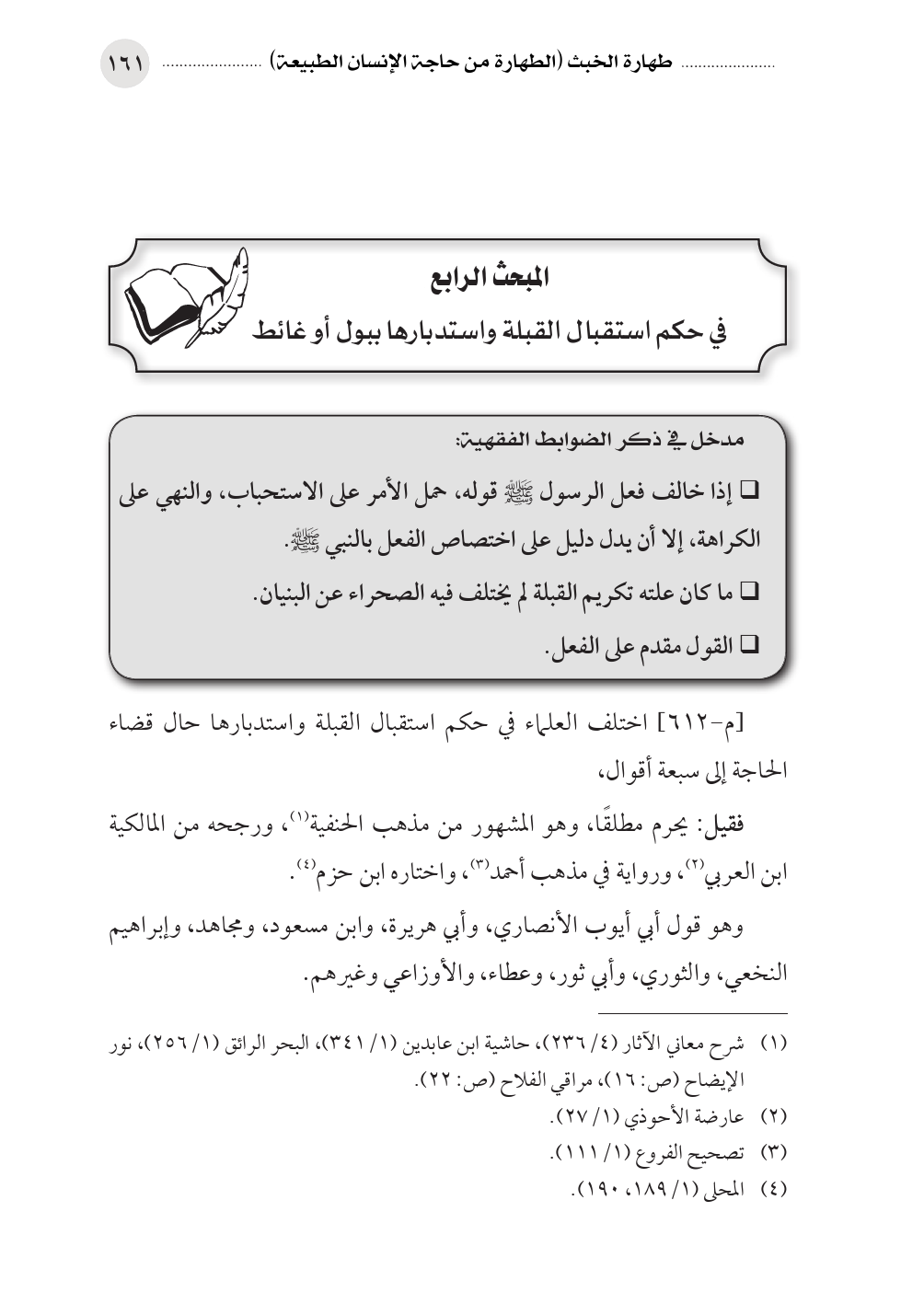 المبحث الرابع في حكم استقبال القبلة واستدبارها ببول أو غائط