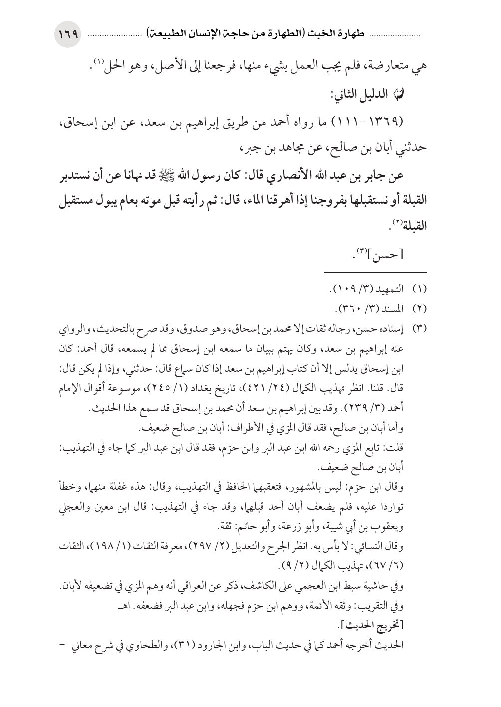 (١٣٦٩ - ١١١) ما رواه أحمد من طريق إبراهيم بن سعد، عن ابن إسحاق، حدثني أبان بن صالح، عن مجاهد بن جبر،