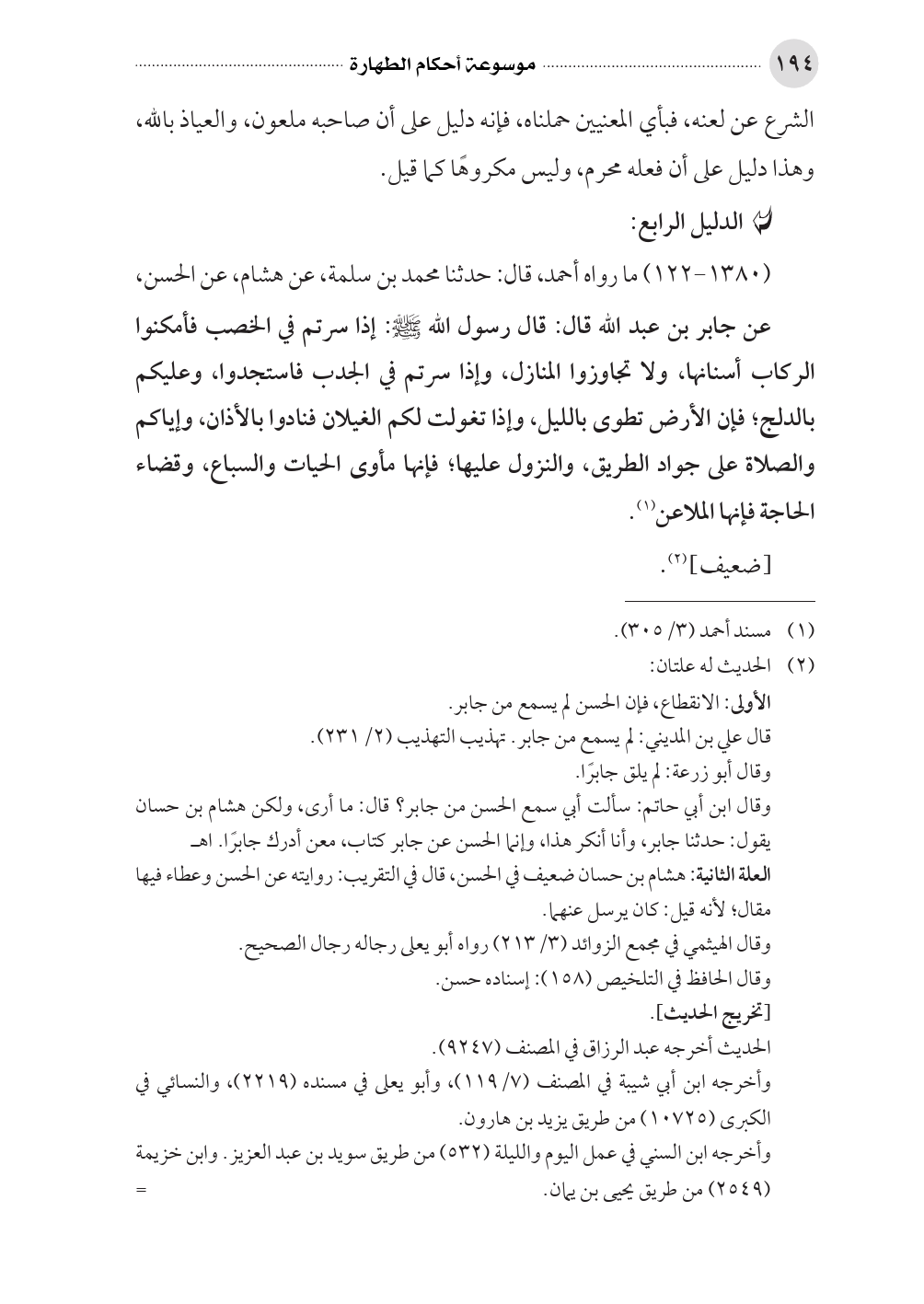 (١٣٨٠ - ١٢٢) ما رواه أحمد، قال: حدثنا محمد بن سلمة، عن هشام، عن الحسن،