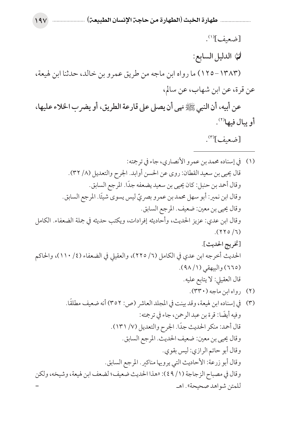 (١٣٨٣ - ١٢٥) ما رواه ابن ماجه من طريق عمرو بن خالد، حدثنا ابن لهيعة، عن قرة، عن ابن شهاب، عن سالم،