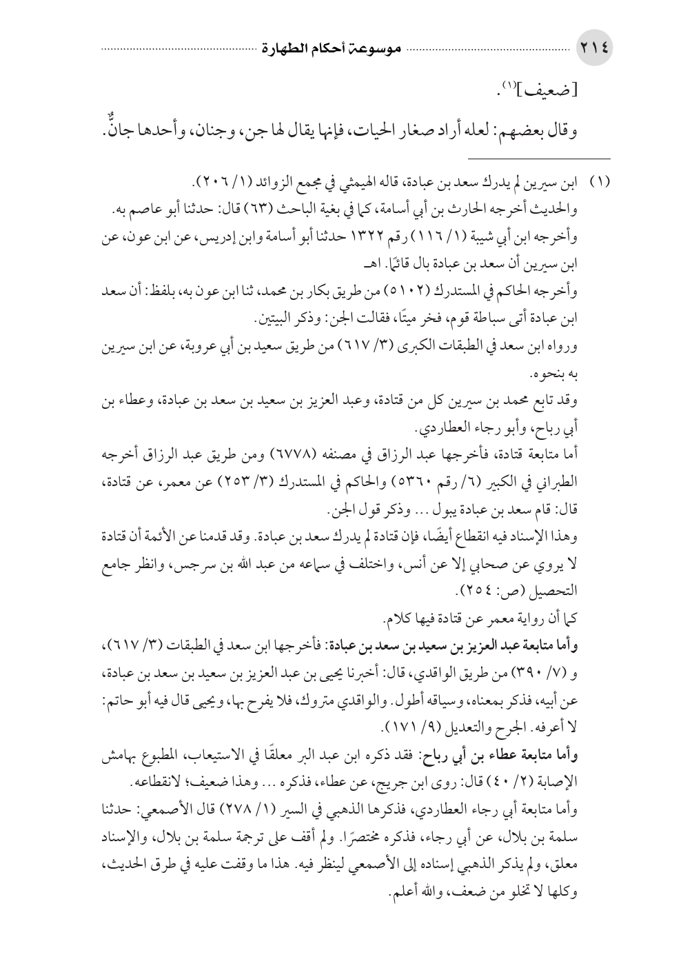 (¬١) ابن سيرين لم يدرك سعد بن عبادة، قاله الهيمثي في مجمع الزوائد (١/ ٢٠٦).