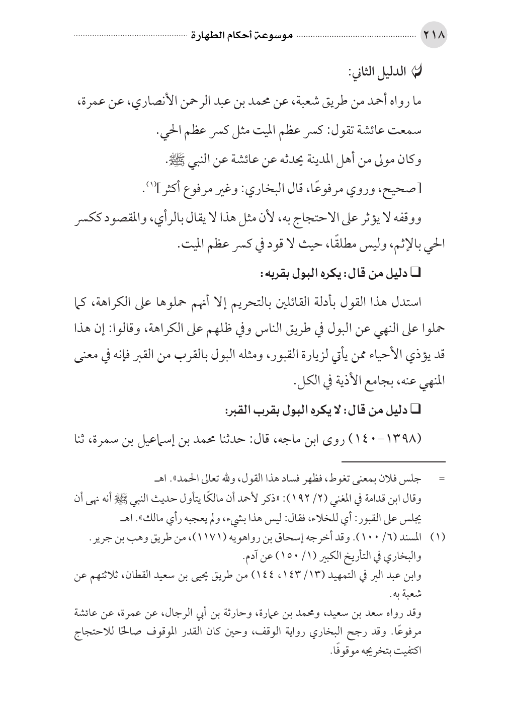 ما رواه أحمد من طريق شعبة، عن محمد بن عبد الرحمن الأنصاري، عن عمرة،
