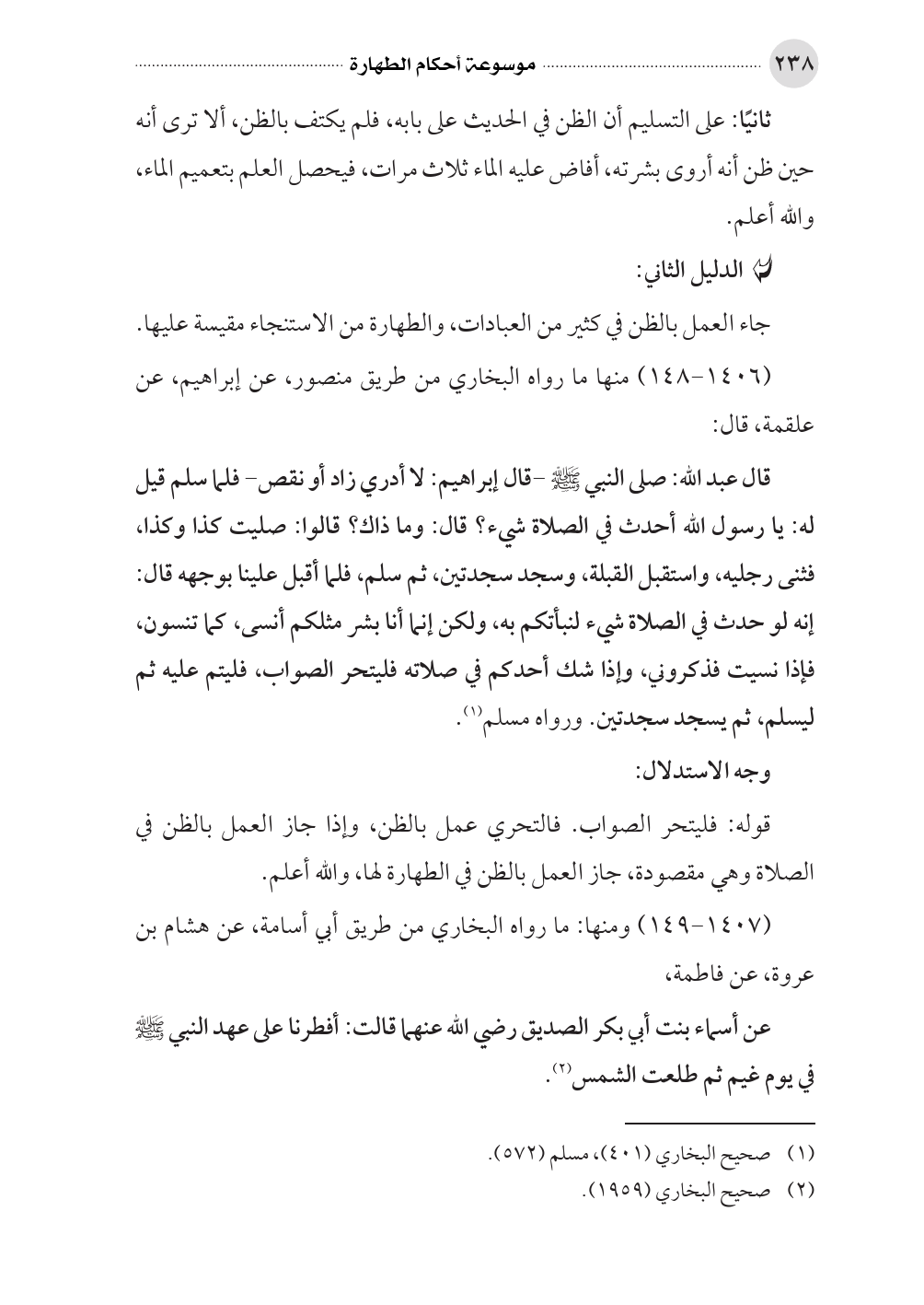 ثانيًا: على التسليم أن الظن في الحديث على بابه، فلم يكتف بالظن، ألا ترى أنه حين ظن أنه أروى بشرته، أفاض عليه الماء ثلاث مرات، فيحصل العلم بتعميم الماء، والله أعلم.