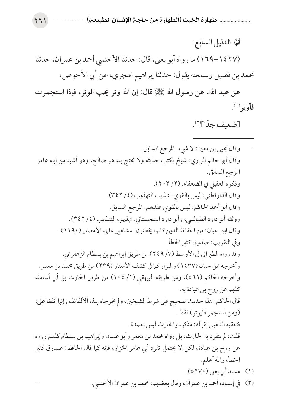 (١٤٢٧ - ١٦٩) ما رواه أبو يعلى، قال: حدثنا الأخنسي أحمد بن عمران، حدثنا محمد بن فضيل وسمعته يقول: حدثنا إبراهيم الهجري، عن أبي الأحوص،