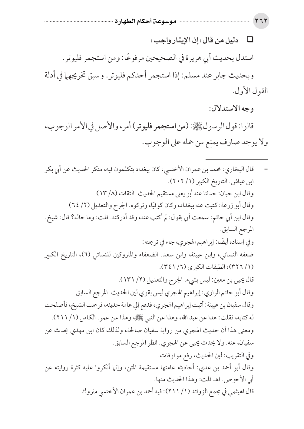 استدل بحديث أبي هريرة في الصحيحين مرفوعًا: ومن استجمر فليوتر.
