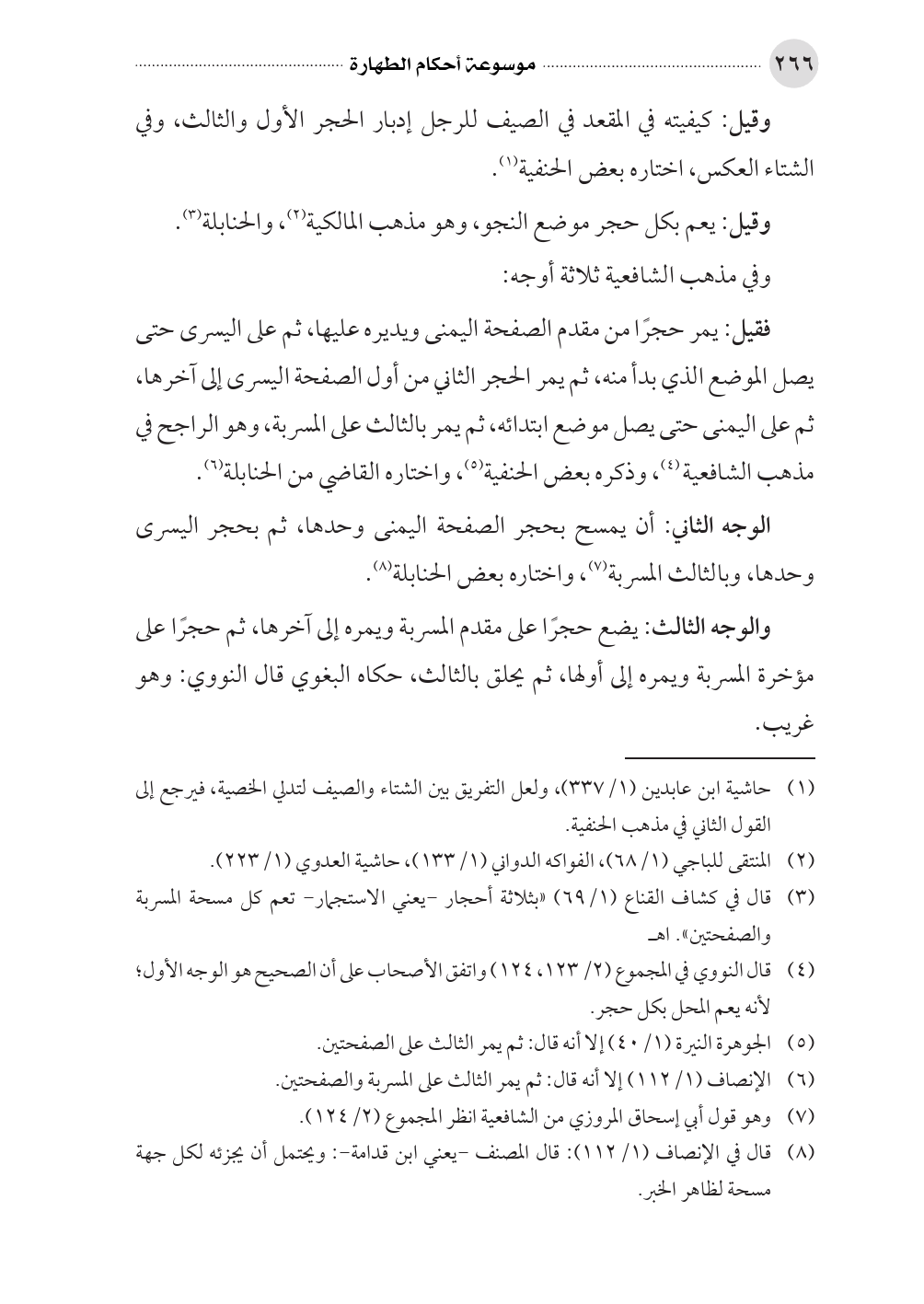 الوجه الثاني: أن يمسح بحجر الصفحة اليمنى وحدها، ثم بحجر اليسرى وحدها، وبالثالث المسربة (¬٧)، واختاره بعض الحنابلة (¬٨).