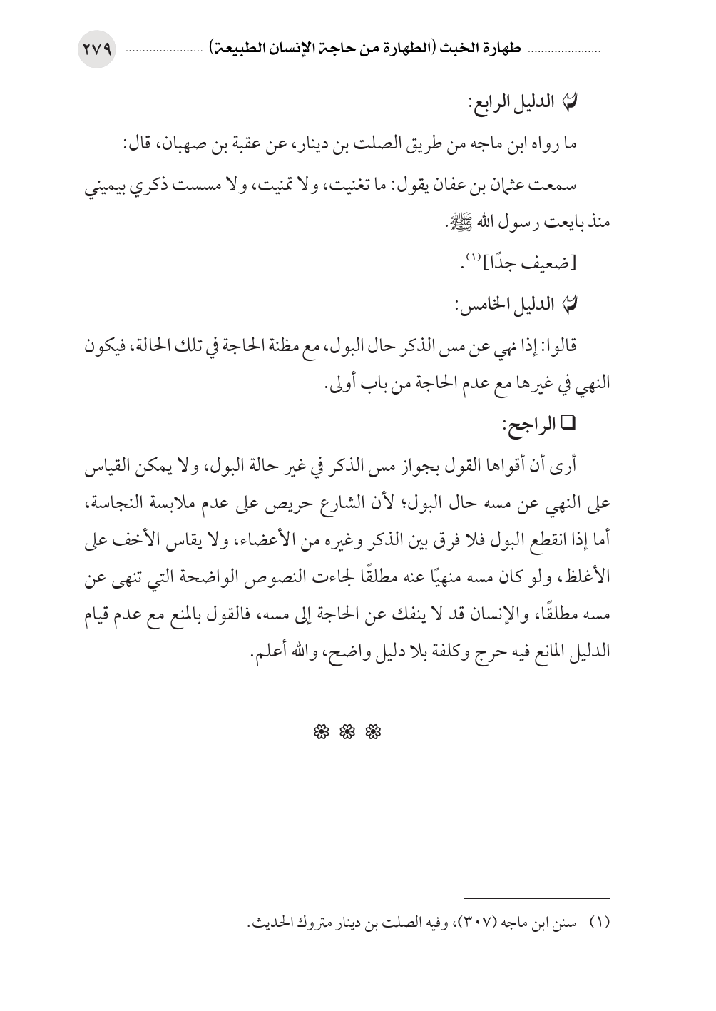 (¬١) سنن ابن ماجه (٣٠٧)، وفيه الصلت بن دينار متروك الحديث.