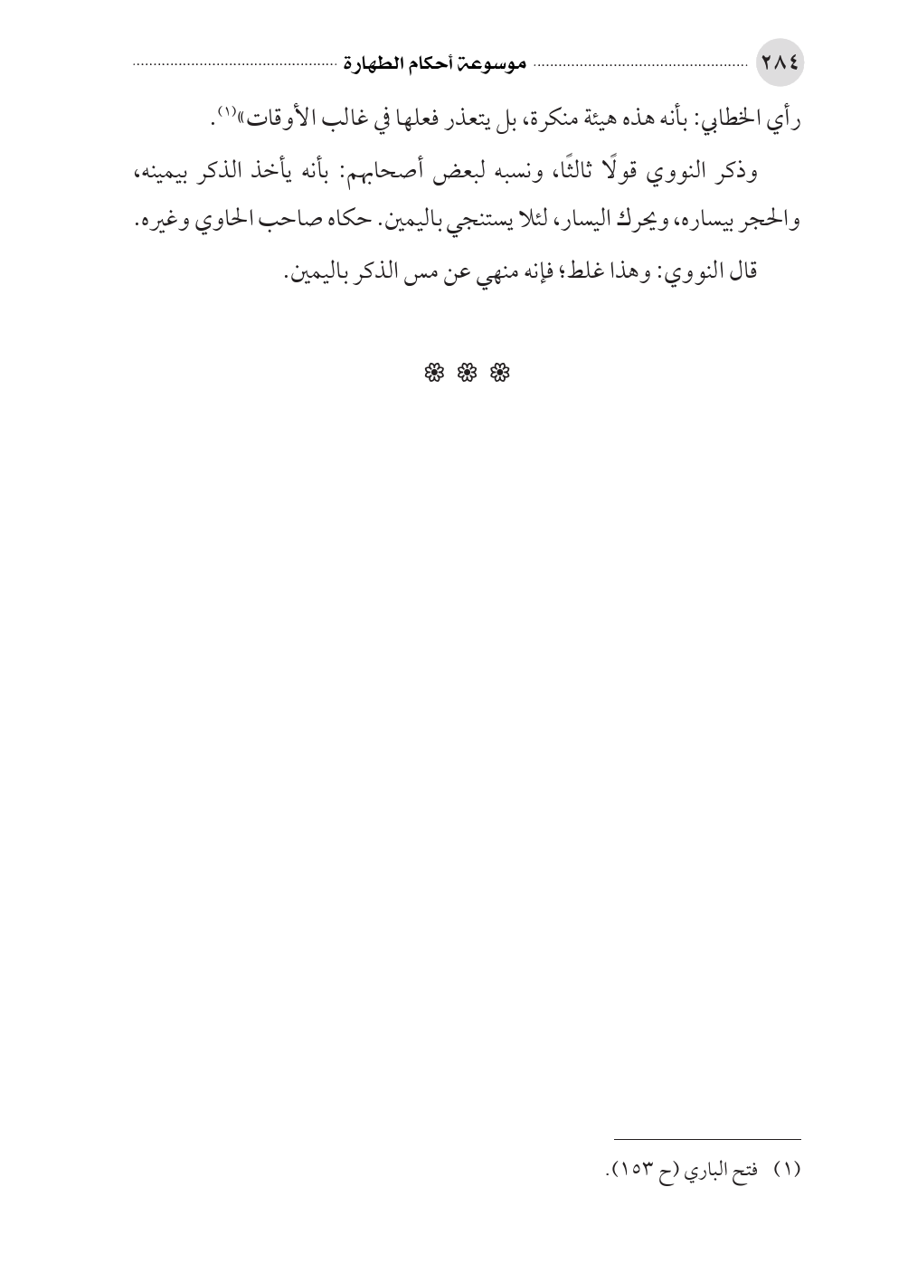 رأي الخطابي: بأنه هذه هيئة منكرة، بل يتعذر فعلها في غالب الأوقات» (¬١).