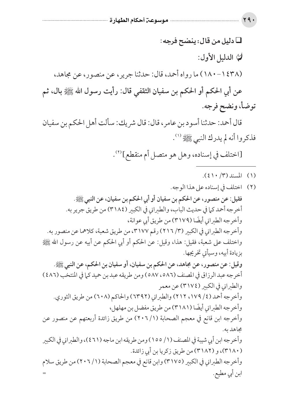 (١٤٣٨ - ١٨٠) ما رواه أحمد، قال: حدثنا جرير، عن منصور، عن مجاهد،