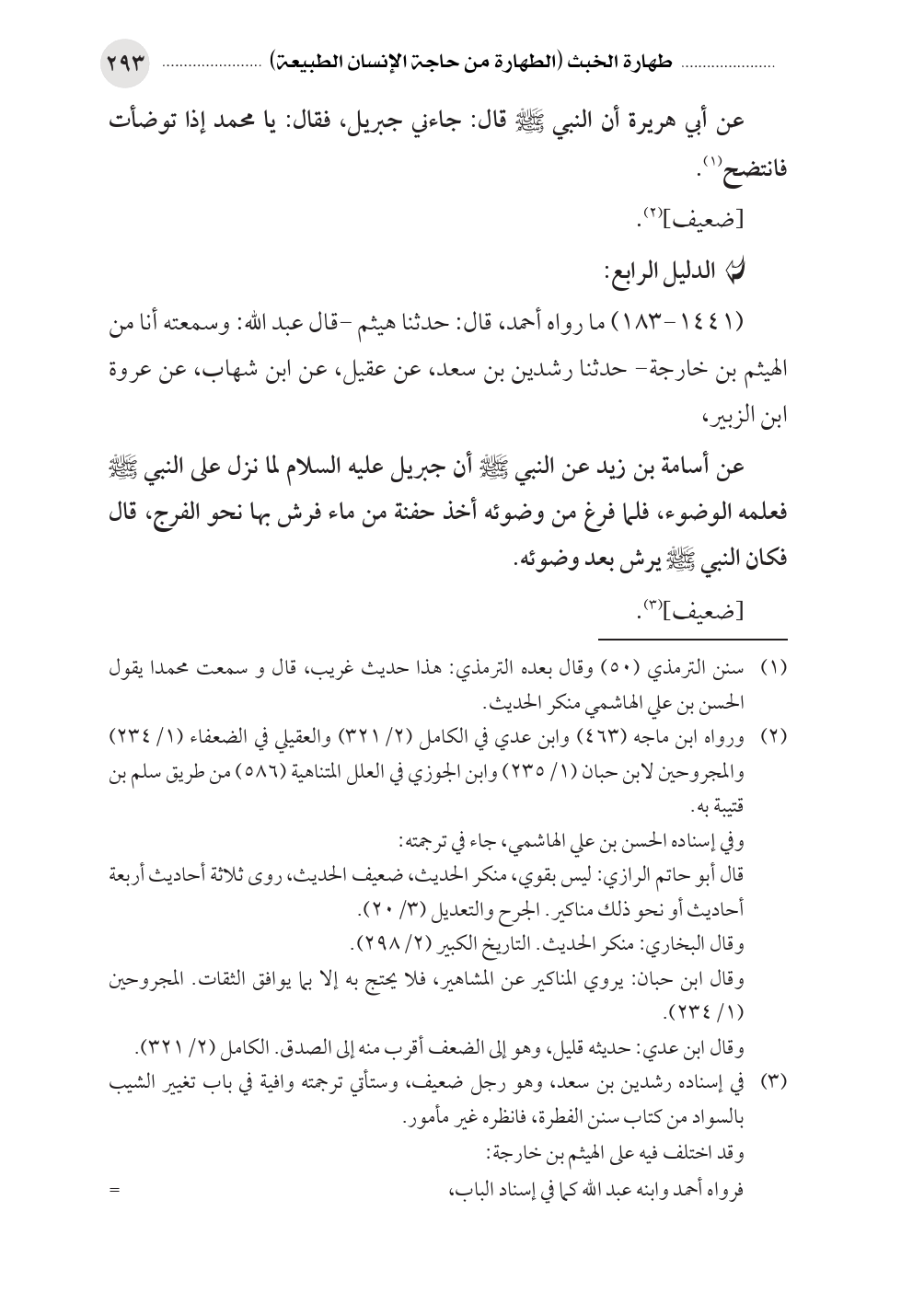 (١٤٤١ - ١٨٣) ما رواه أحمد، قال: حدثنا هيثم -قال عبد الله: وسمعته أنا من الهيثم بن خارجة- حدثنا رشدين بن سعد، عن عقيل، عن ابن شهاب، عن عروة ابن الزبير،