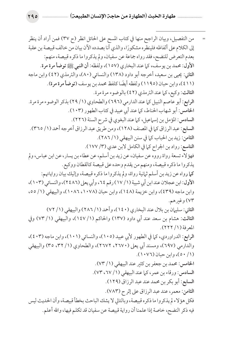 فكل هؤلاء لم يذكروا ما ذكره قبيصة، وبالتالي لا يشك الباحث بخطأ قبيصة، وأن الحديث ليس فيه ذكر النضح، خاصة إذا علمنا أن رواية قبيصة عن سفيان قد تكلم فيها، والله أعلم.