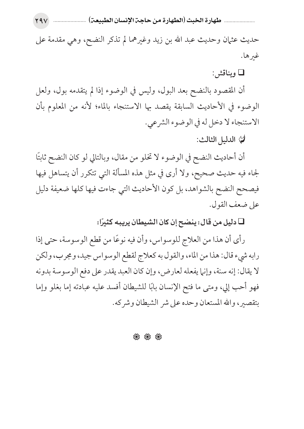 • دليل من قال: ينضح إن كان الشيطان يريبه كثيرًا: