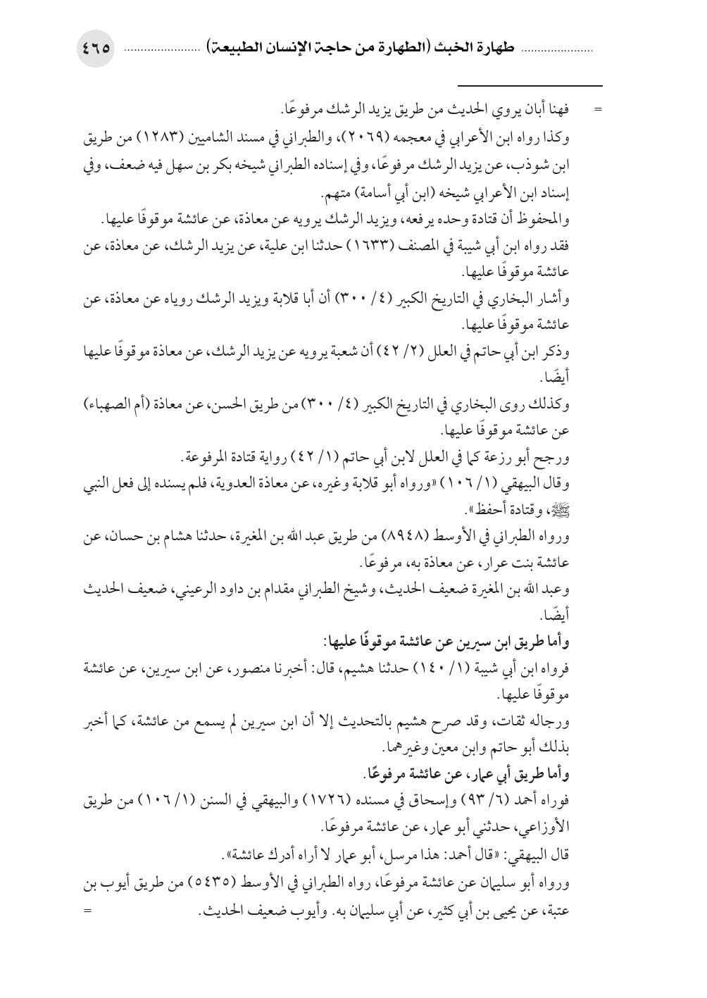 وذكر ابن أبي حاتم في العلل (٢/ ٤٢) أن شعبة يرويه عن يزيد الرشك، عن معاذة موقوفًا عليها أيضًا.