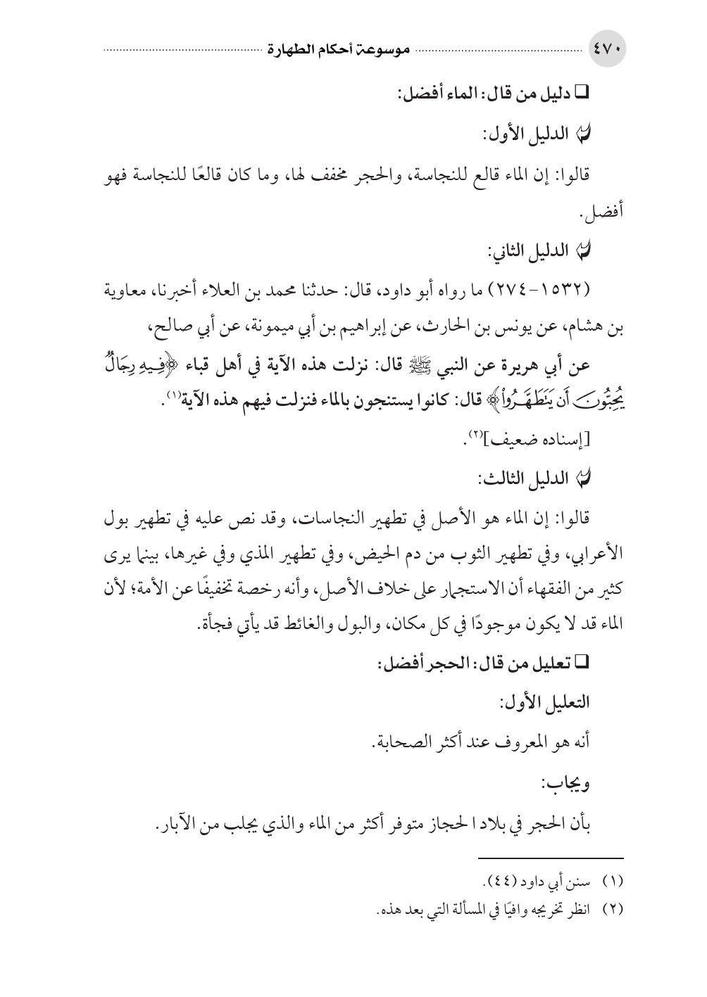 (١٥٣٢ - ٢٧٤) ما رواه أبو داود، قال: حدثنا محمد بن العلاء أخبرنا، معاوية بن هشام، عن يونس بن الحارث، عن إبراهيم بن أبي ميمونة، عن أبي صالح،
