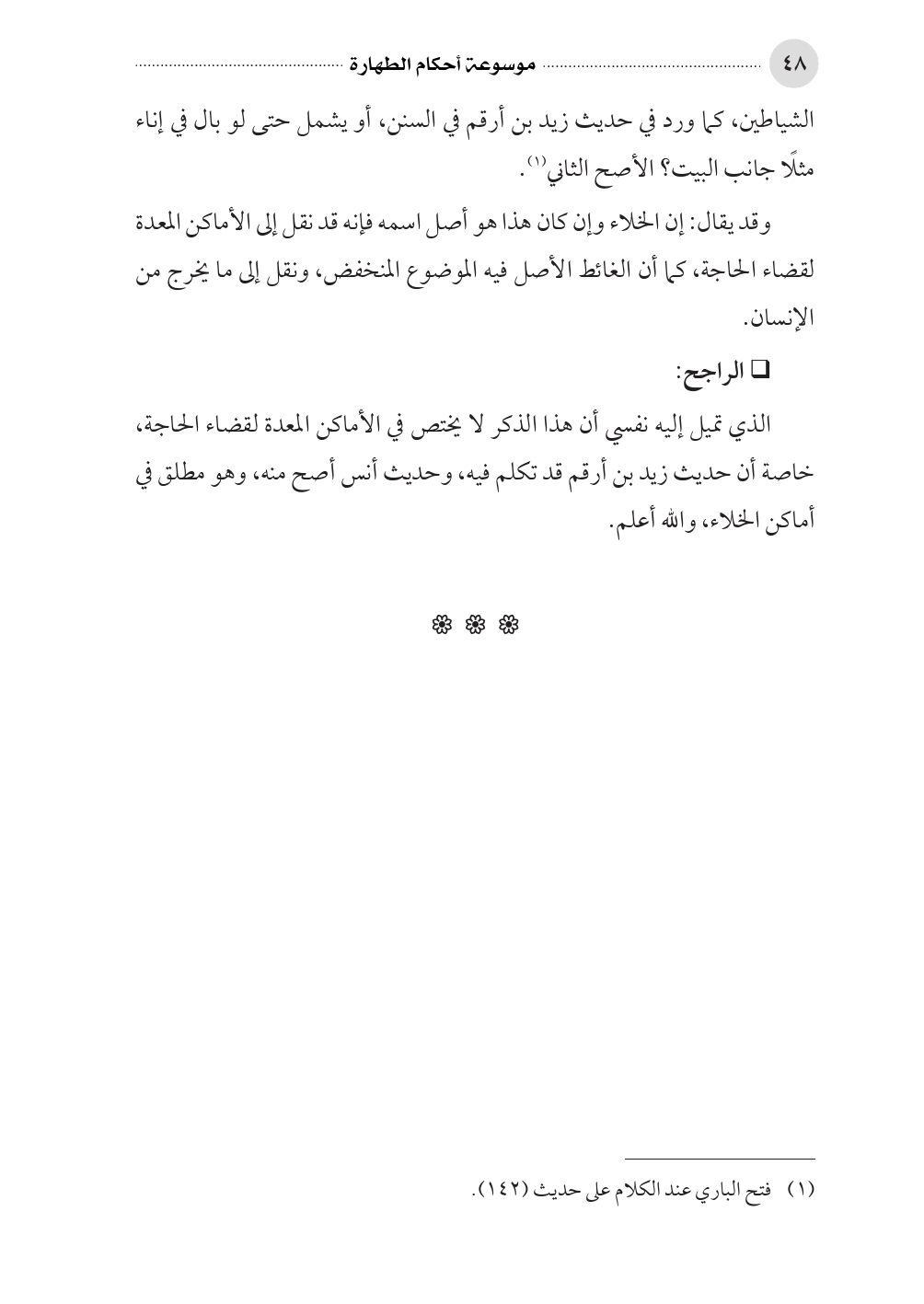 وقد يقال: إن الخلاء وإن كان هذا هو أصل اسمه فإنه قد نقل إلى الأماكن المعدة لقضاء الحاجة، كما أن الغائط الأصل فيه الموضوع المنخفض، ونقل إلى ما يخرج من الإنسان.