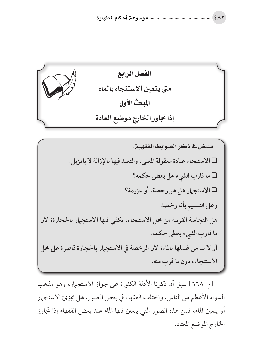 الفصل الرابع متى يتعين الاستنجاء بالماء
