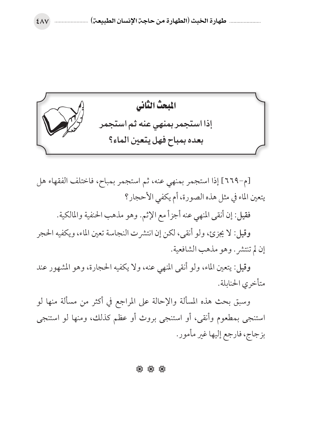 المبحث الثاني إذا استجمر بمنهي عنه ثم استجمر بعده بمباح فهل يتعين الماء؟