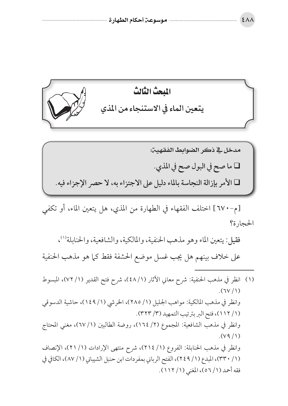 المبحث الثالث يتعين الماء في الاستنجاء من المذي