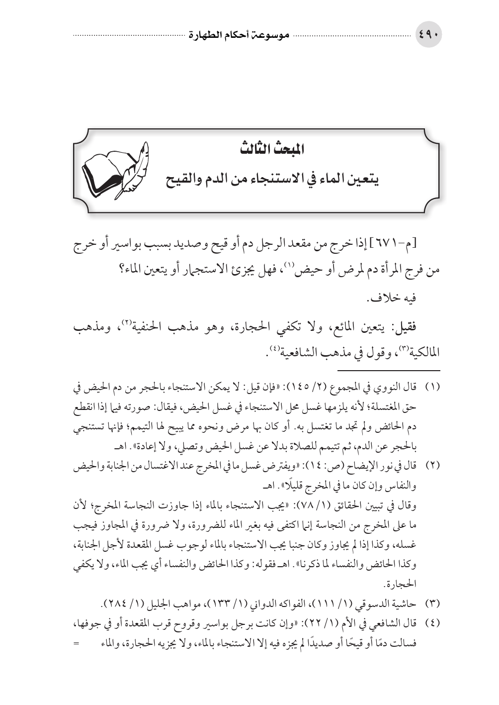 المبحث الثالث يتعين الماء في الاستنجاء من الدم والقيح