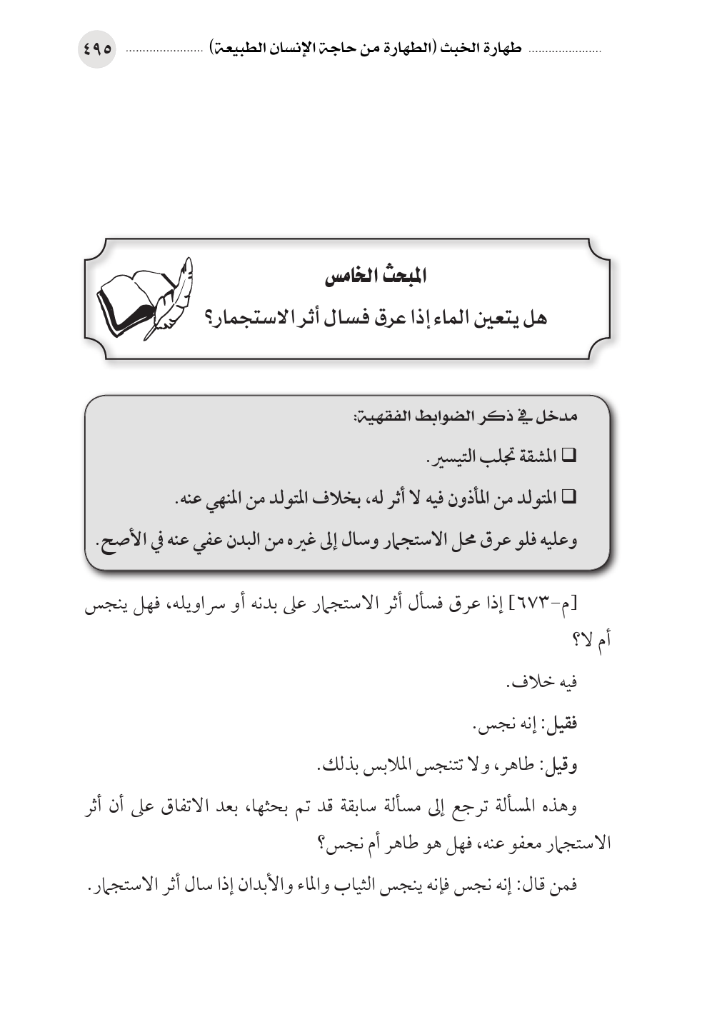المبحث الخامس هل يتعين الماء إذا عرق فسال أثر الاستجمار؟