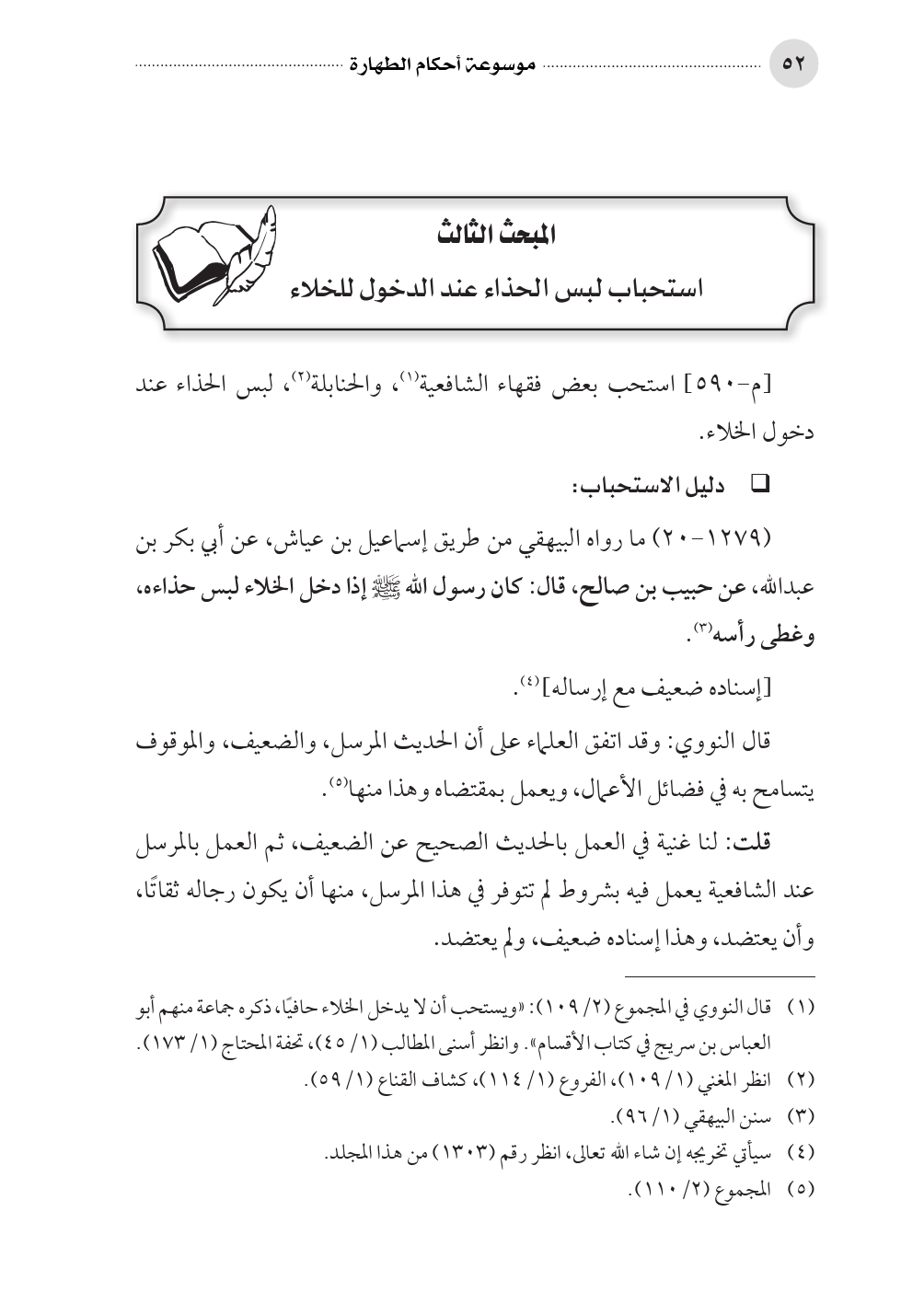 المبحث الثالث استحباب لبس الحذاء عند الدخول للخلاء