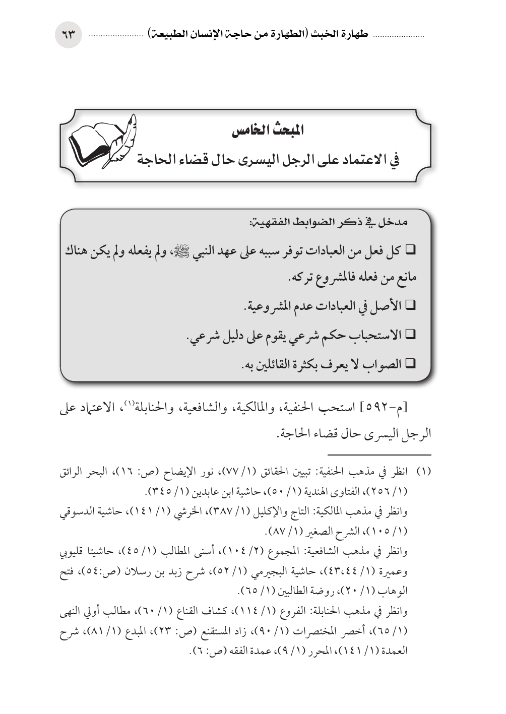 المبحث الخامس في الاعتماد على الرجل اليسرى حال قضاء الحاجة