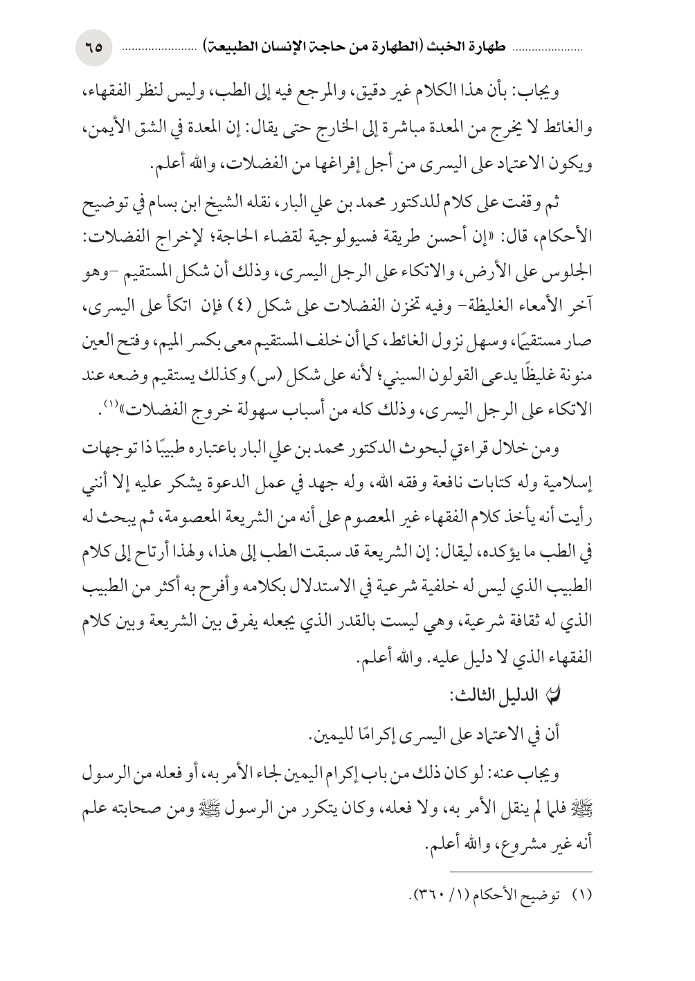 (¬١) توضيح الأحكام (١/ ٣٦٠).