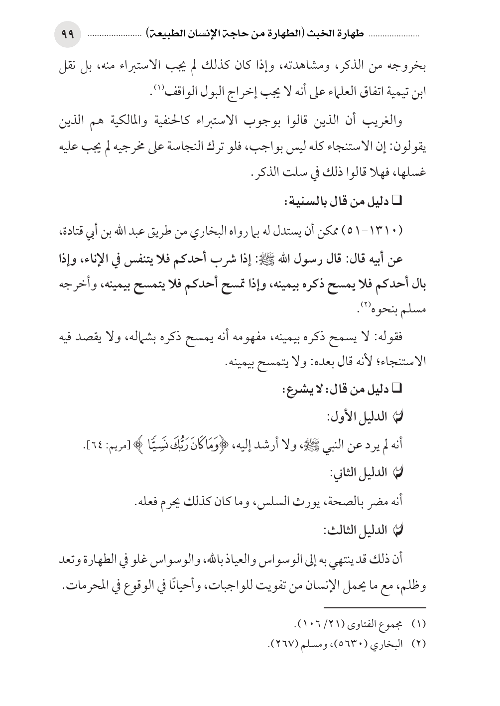 (١٣١٠ - ٥١) ممكن أن يستدل له بما رواه البخاري من طريق عبد الله بن أبي قتادة،