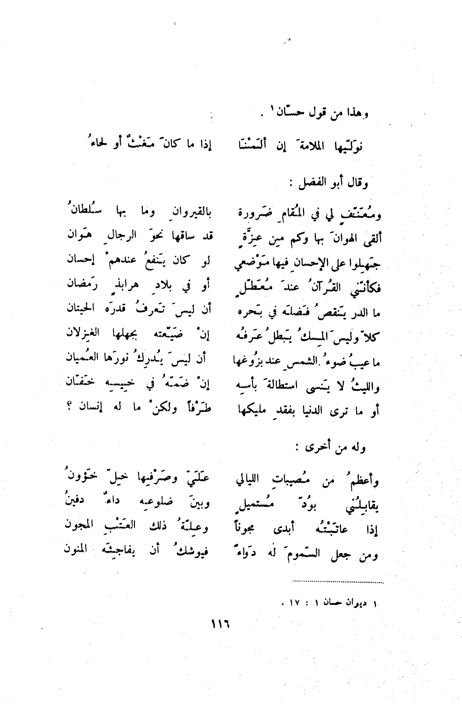نوليها الملامة إن ألمنا ... إذا ما كان مغث أو لحاء وقال أبو الفضل: