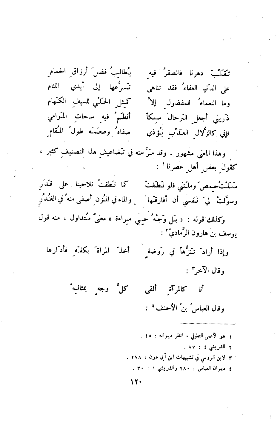 وسولت لي نفسي أن أفارقها ... والماء في المزن أصفى منه في الغدر وكذلك قوله: " بل وجه حبي مراءة " معنى متداول، منه قول يوسف بن هارون الرمادي: